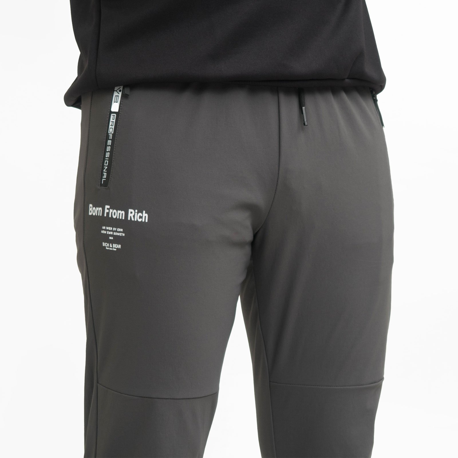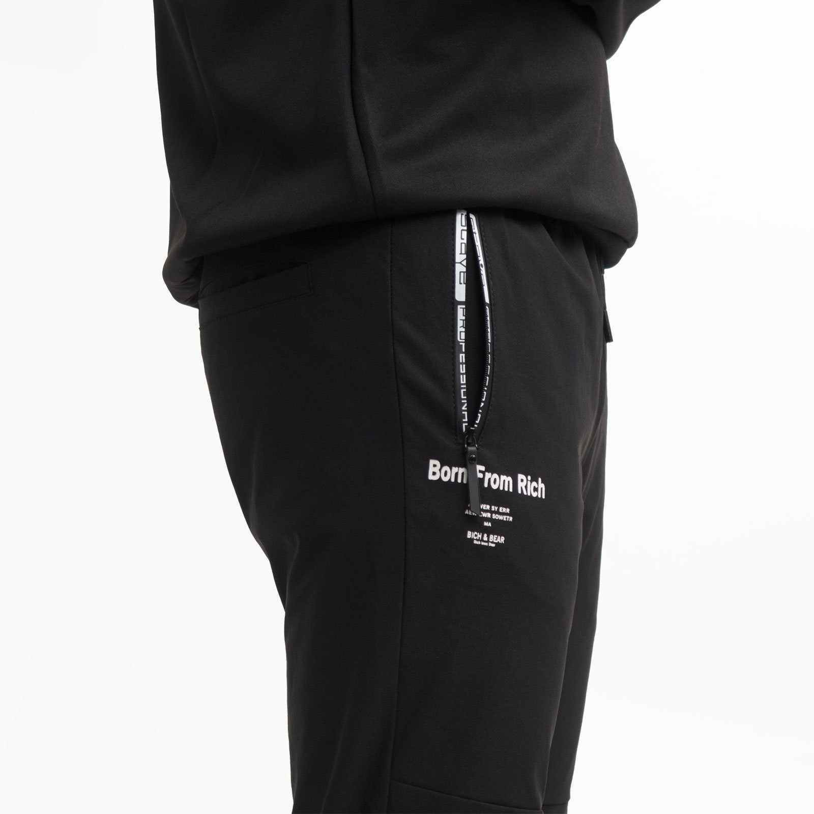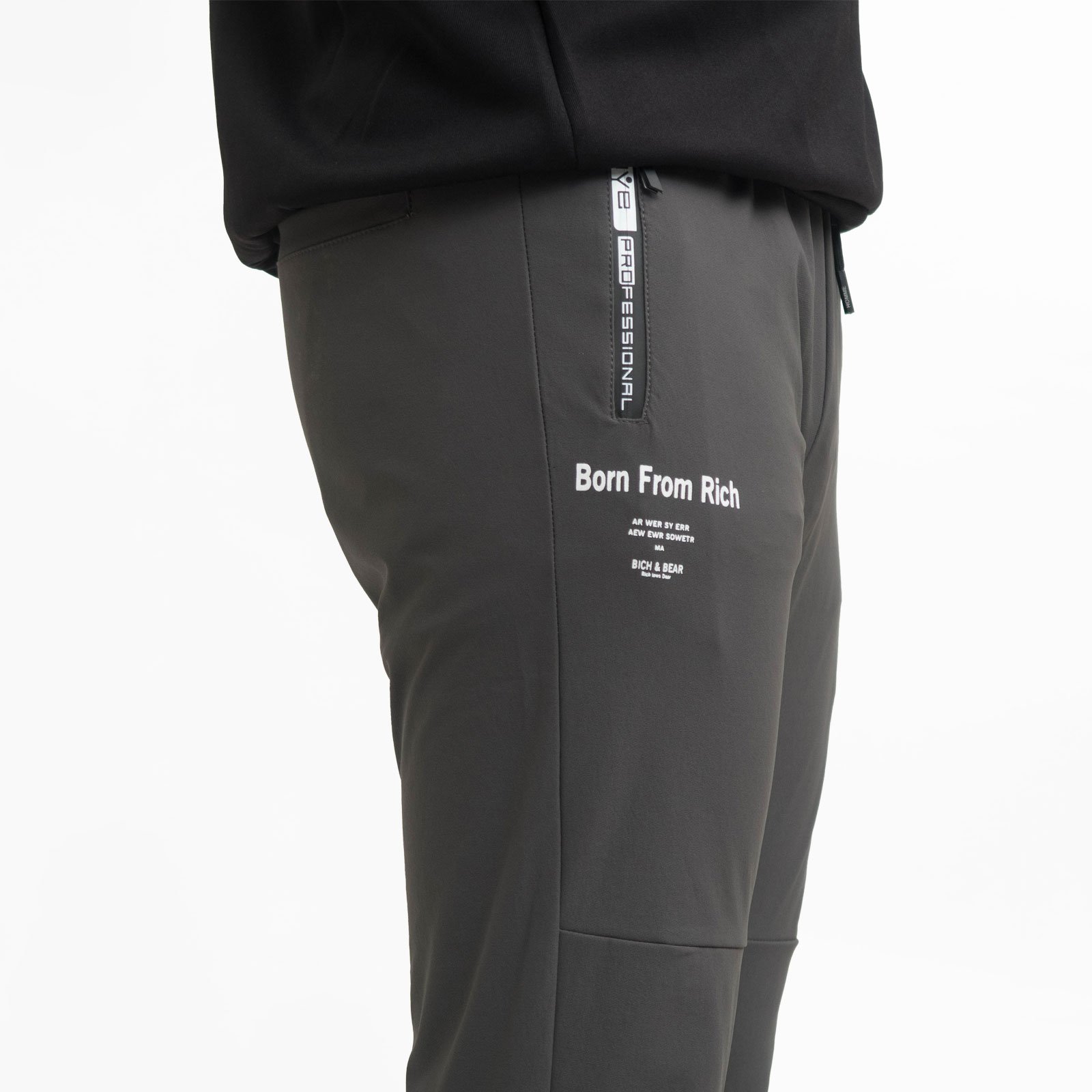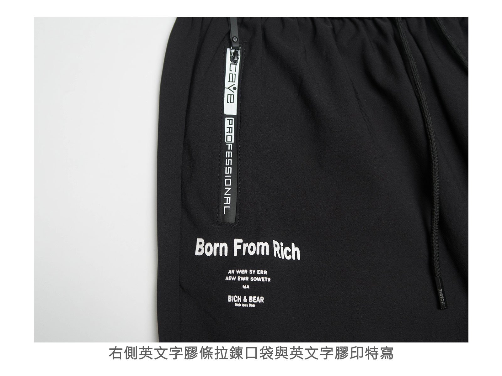 前右側褲管旁膠印英文字樣。