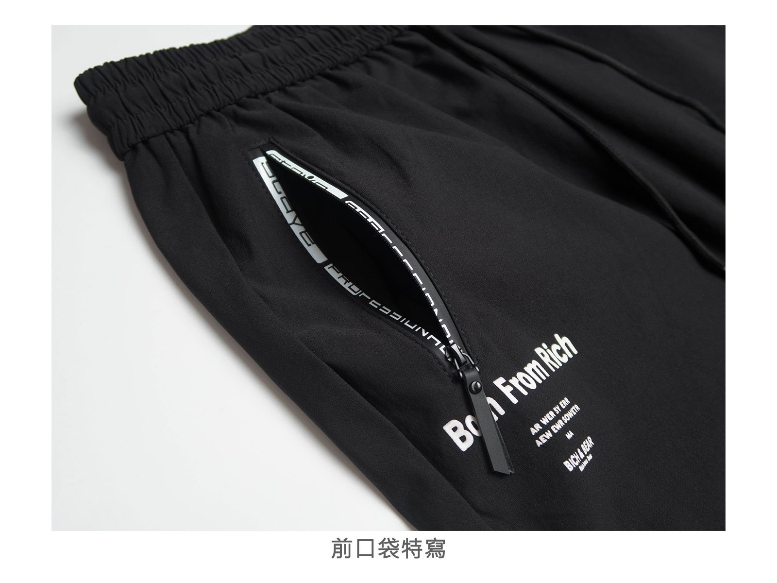 前:左、右各一英文字膠條拉鍊口袋。