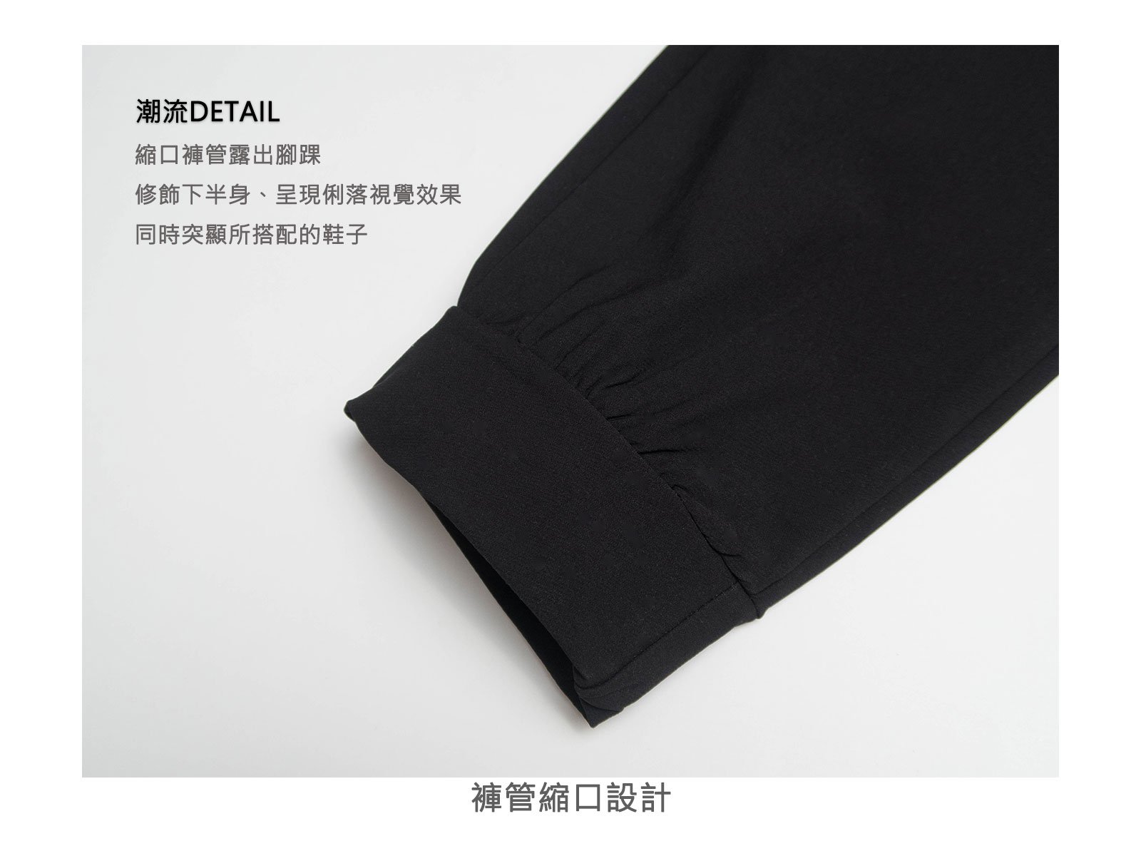 褲管的縮口讓腳踝露出,