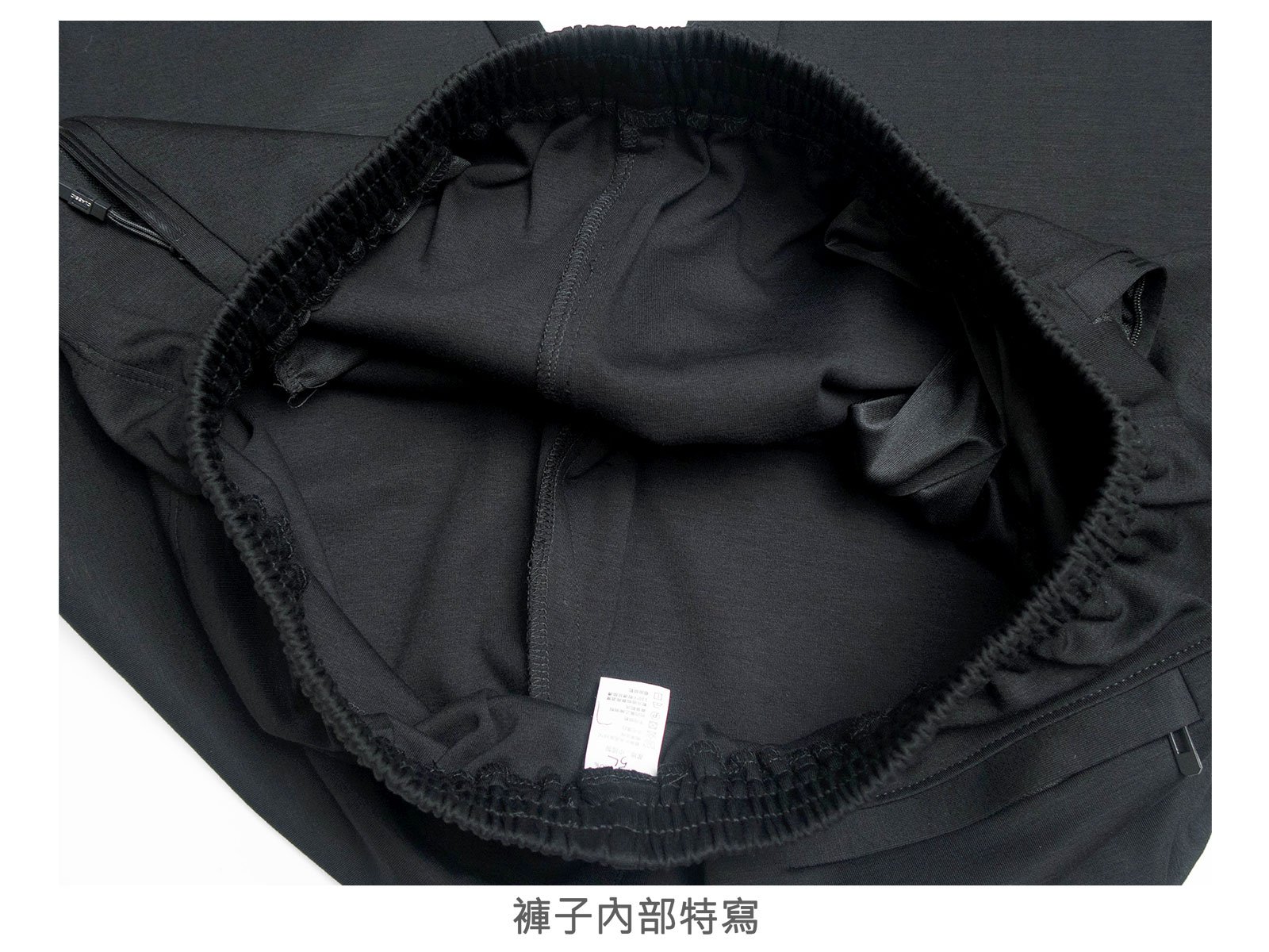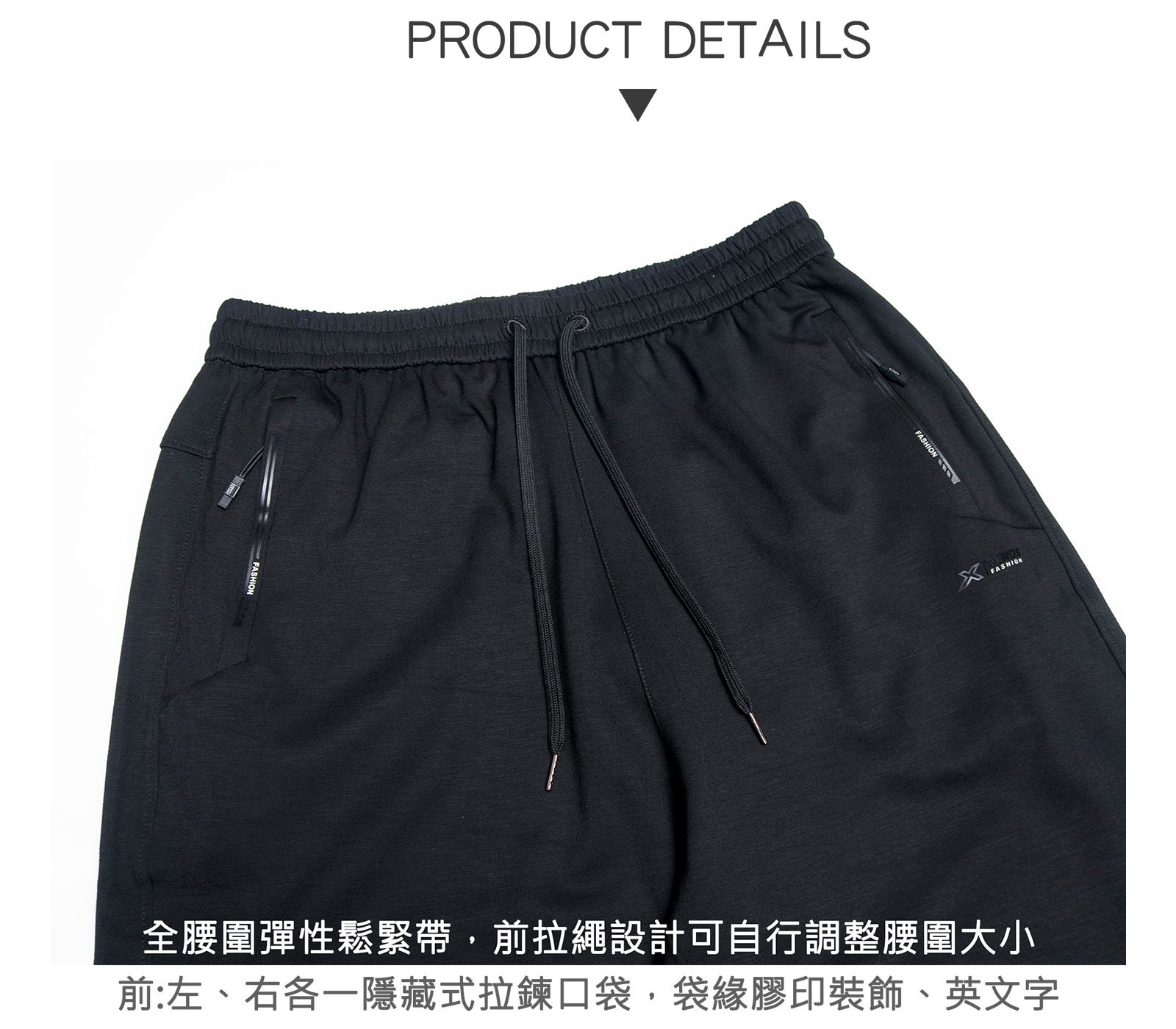 全腰圍彈性鬆緊帶,前拉繩設計可自行調整腰圍大小。