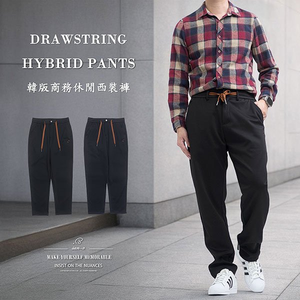 韓版商務休閒西裝褲 加厚休閒長褲 鬆緊腰運動休閒褲 商務長褲 微錐形褲 Korean Style Drawstring Hybrid Pants Elastic Waist Trousers Thickened Casual Dress Pants Smart Casual Trousers Athleisure Trousers Tapered Trousers (312-7396-08)深藍黑、(312-7396-21)黑色 腰圍:30~35英吋 (76~89公分) 男 [實體店面保障] sun-e