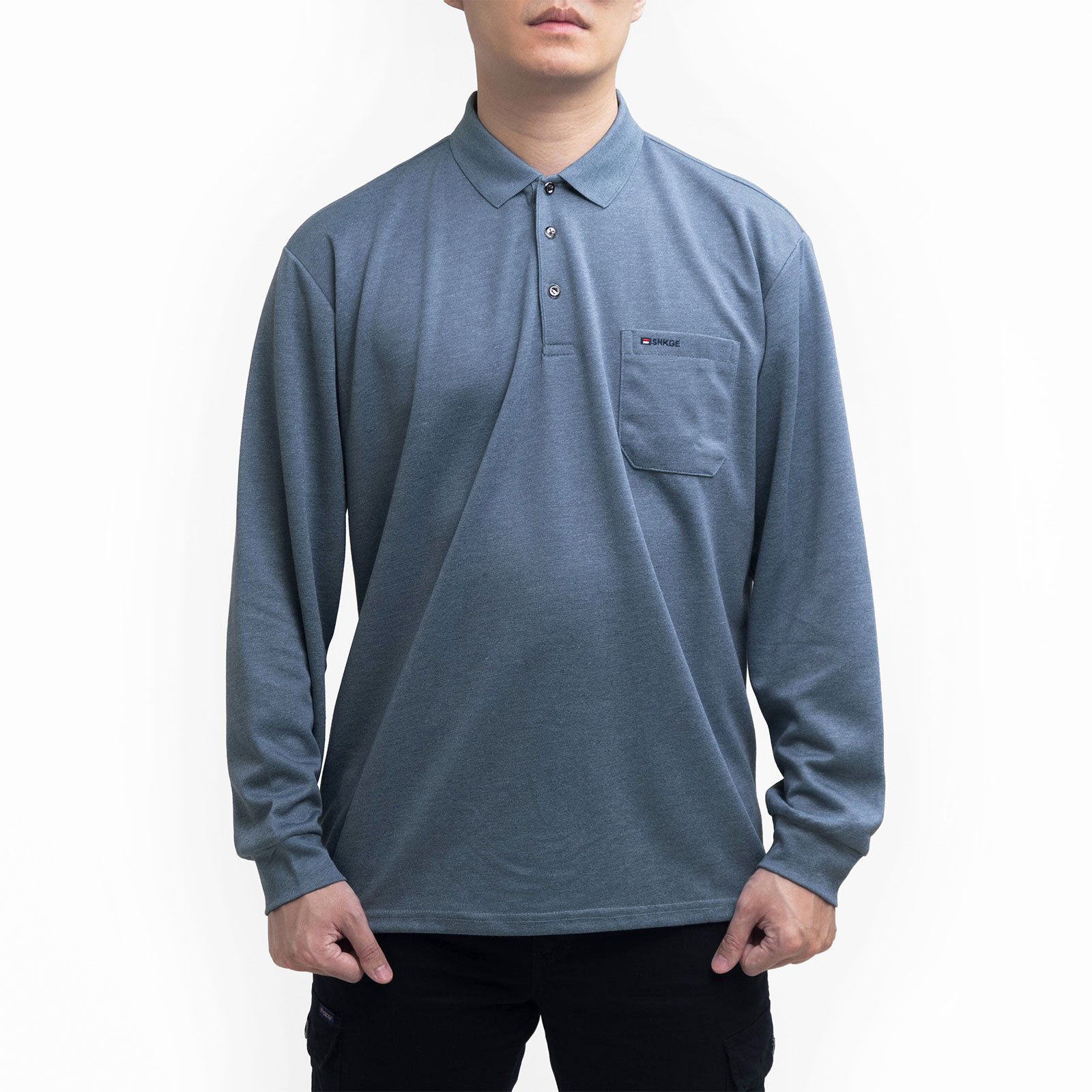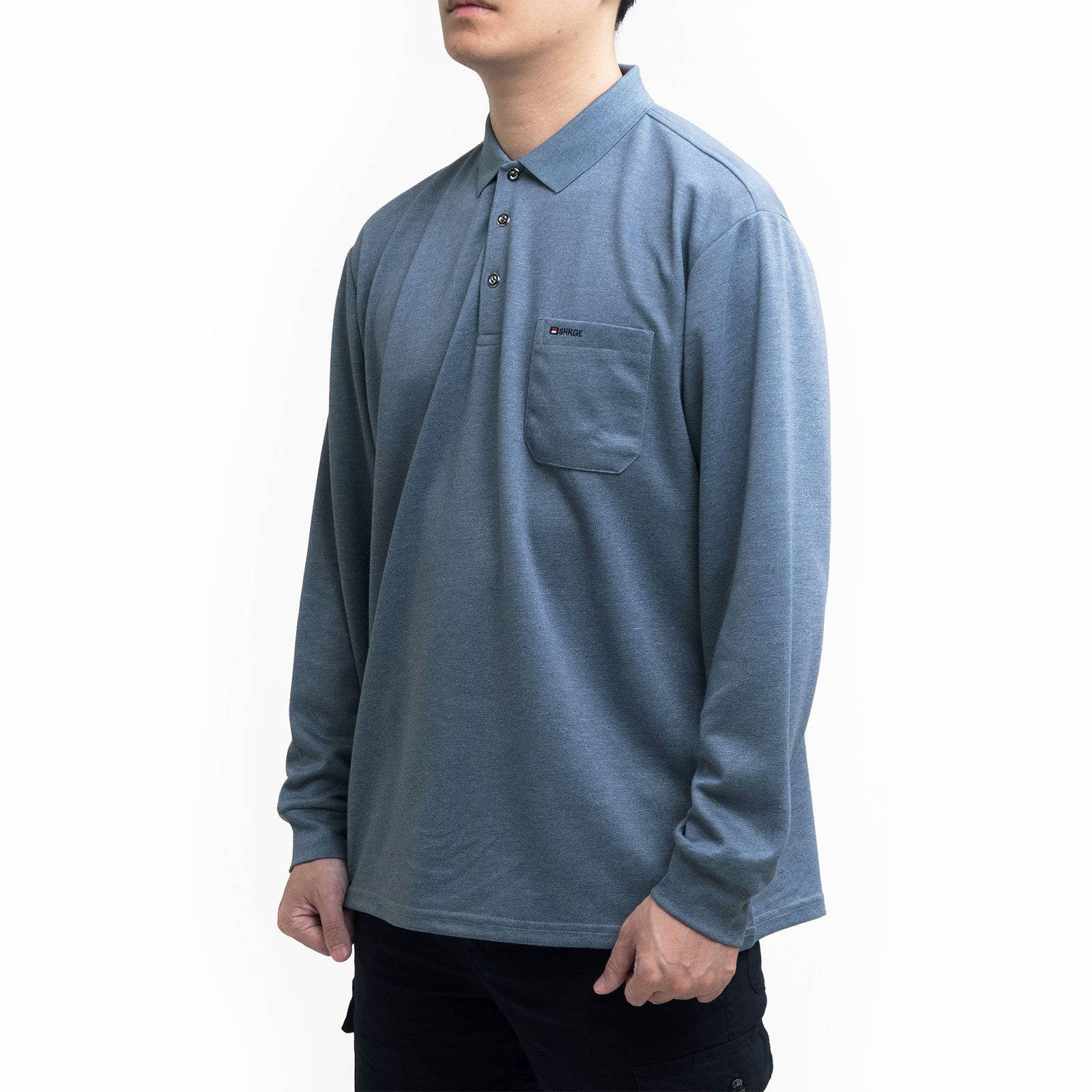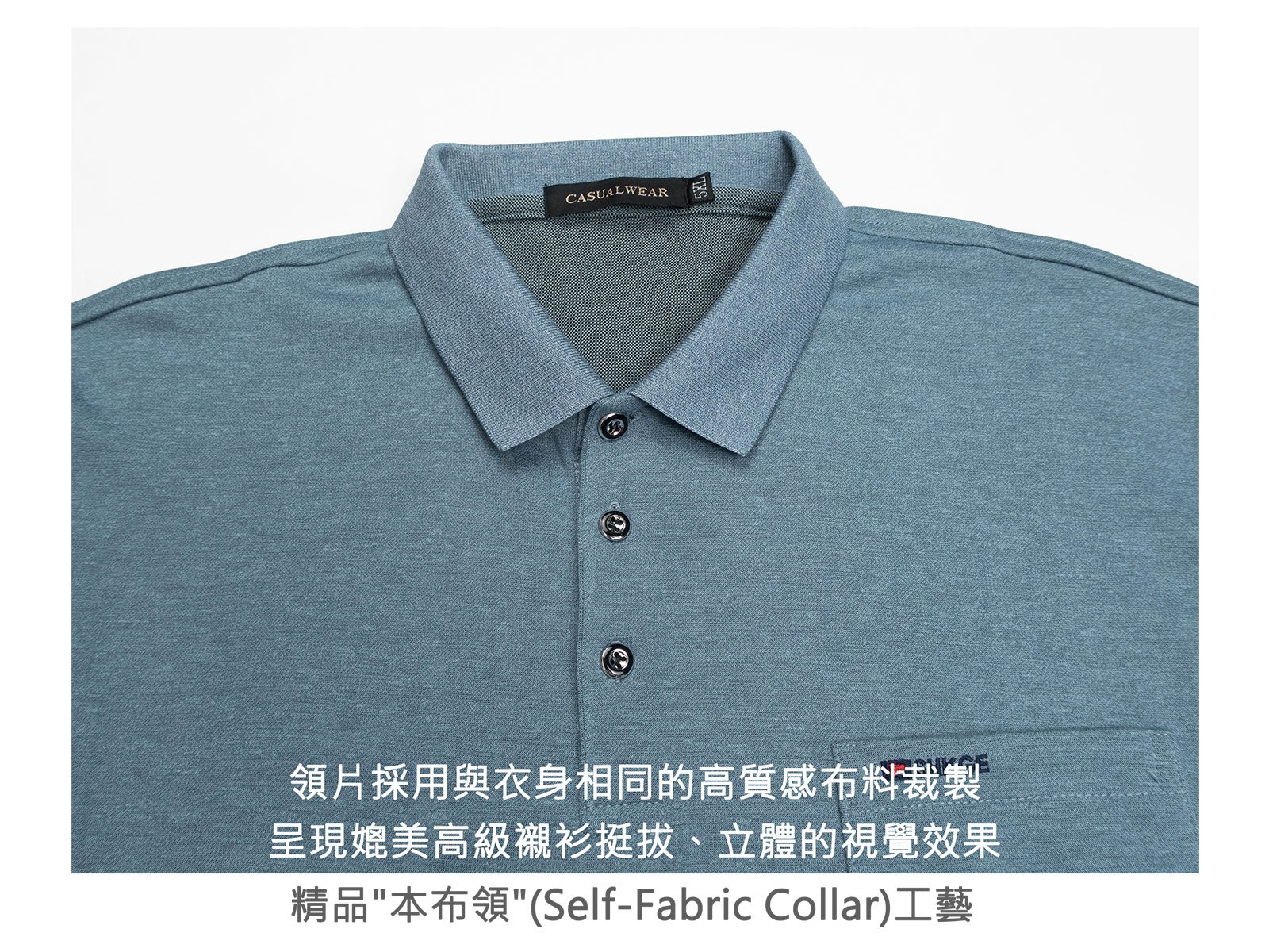 大尺碼本布領長袖POLO衫,左胸口一口袋,