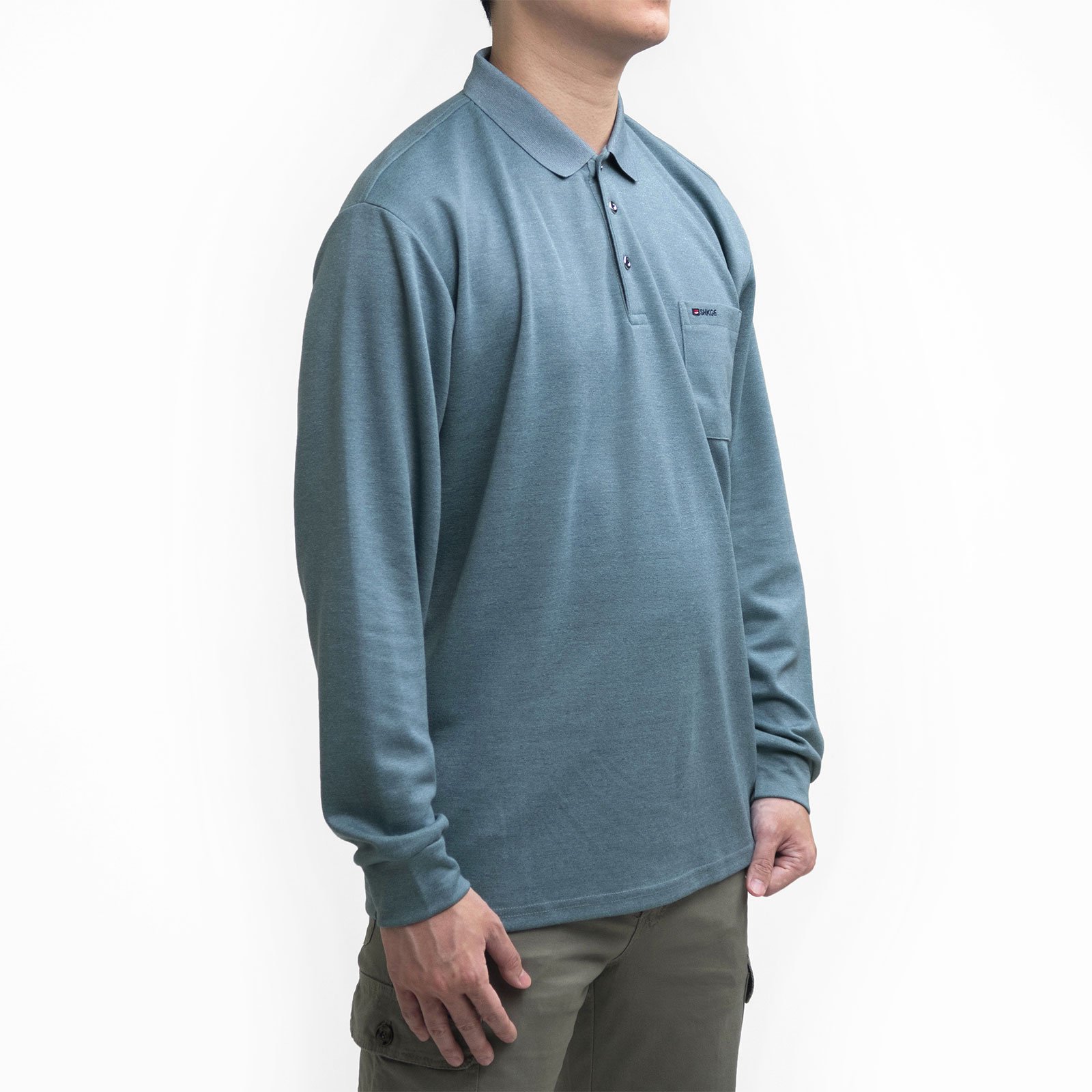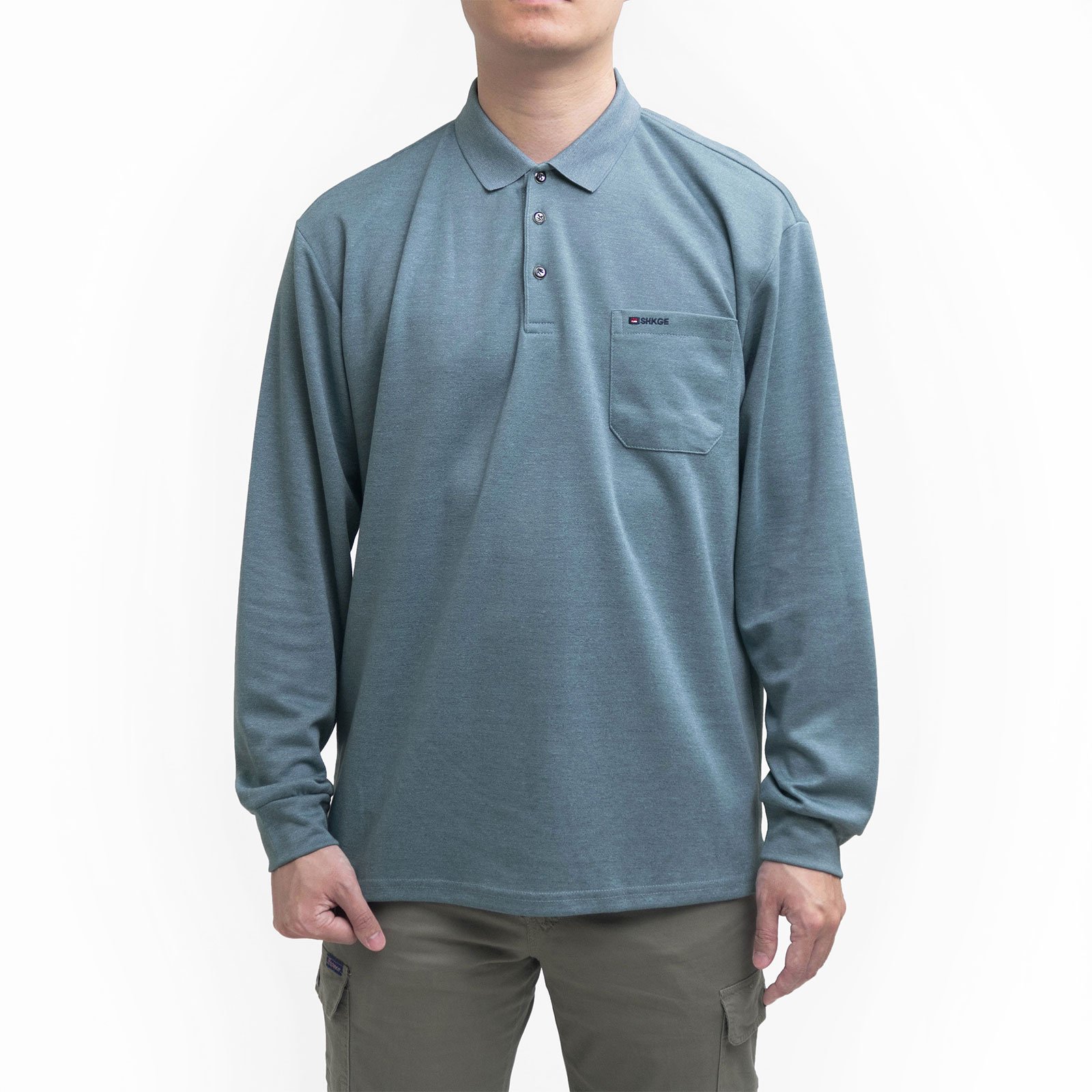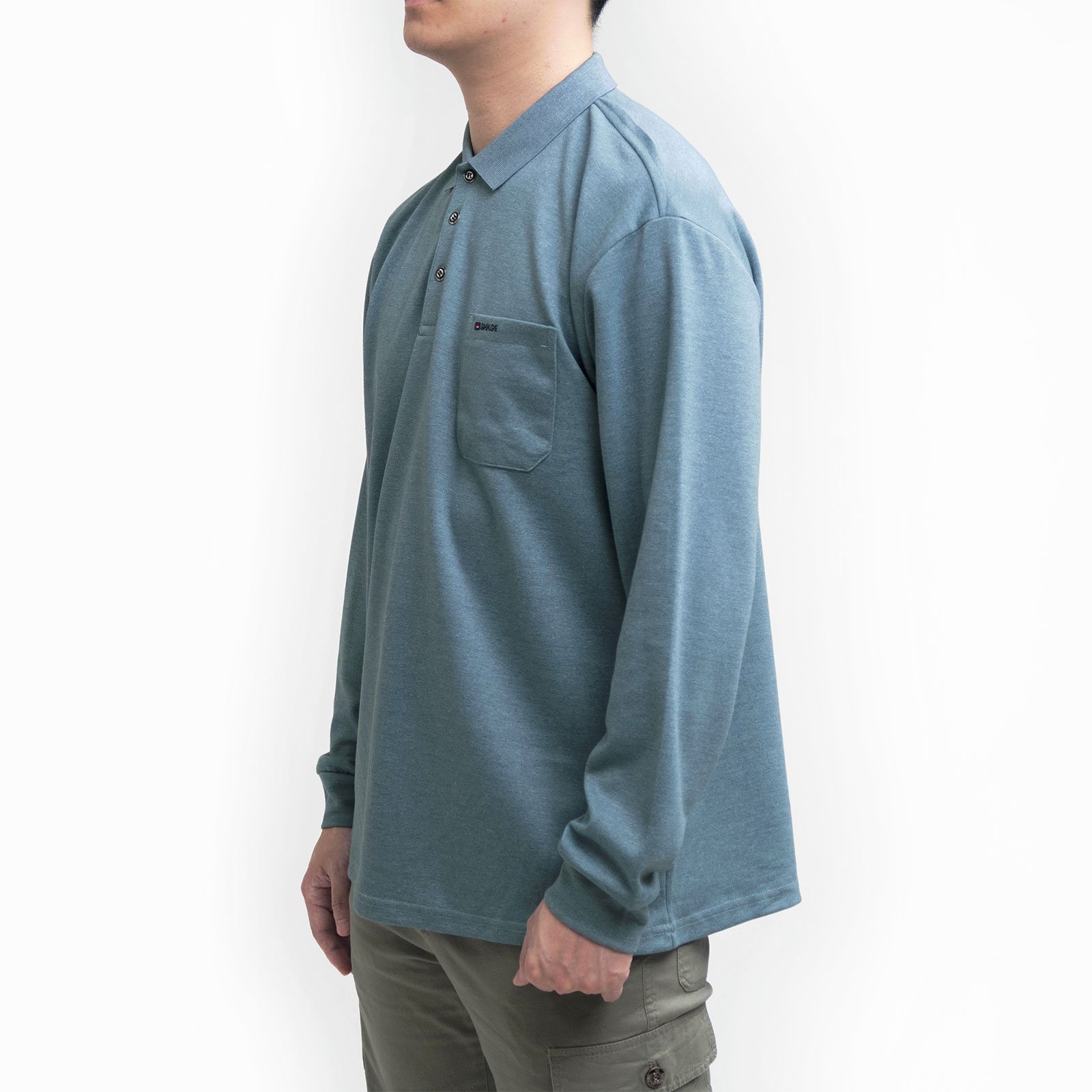 大尺碼本布領長袖POLO衫,左胸口一口袋,