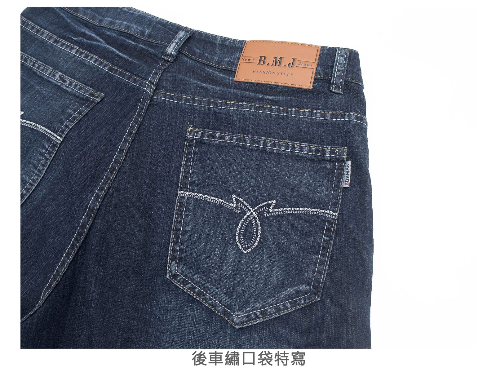 褲身刷白、刷紋處理,伸縮有彈性。