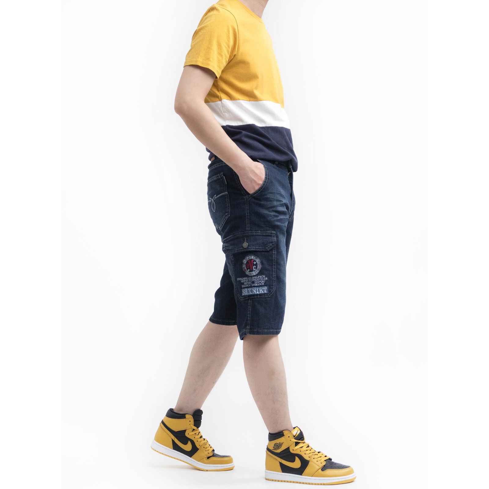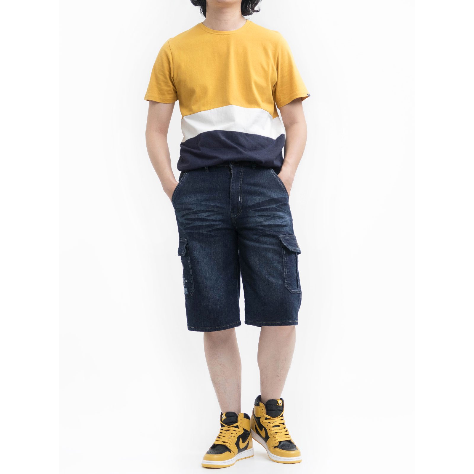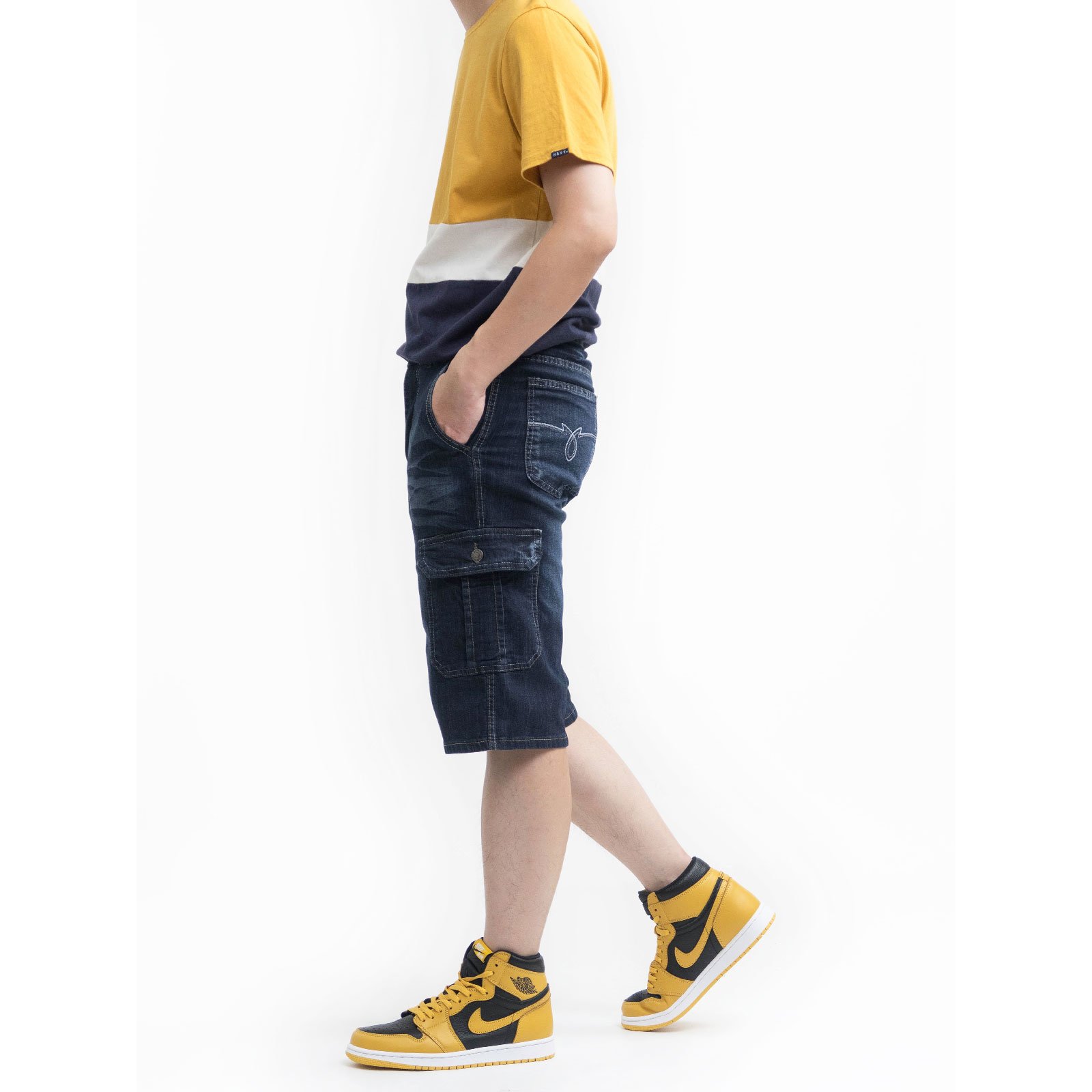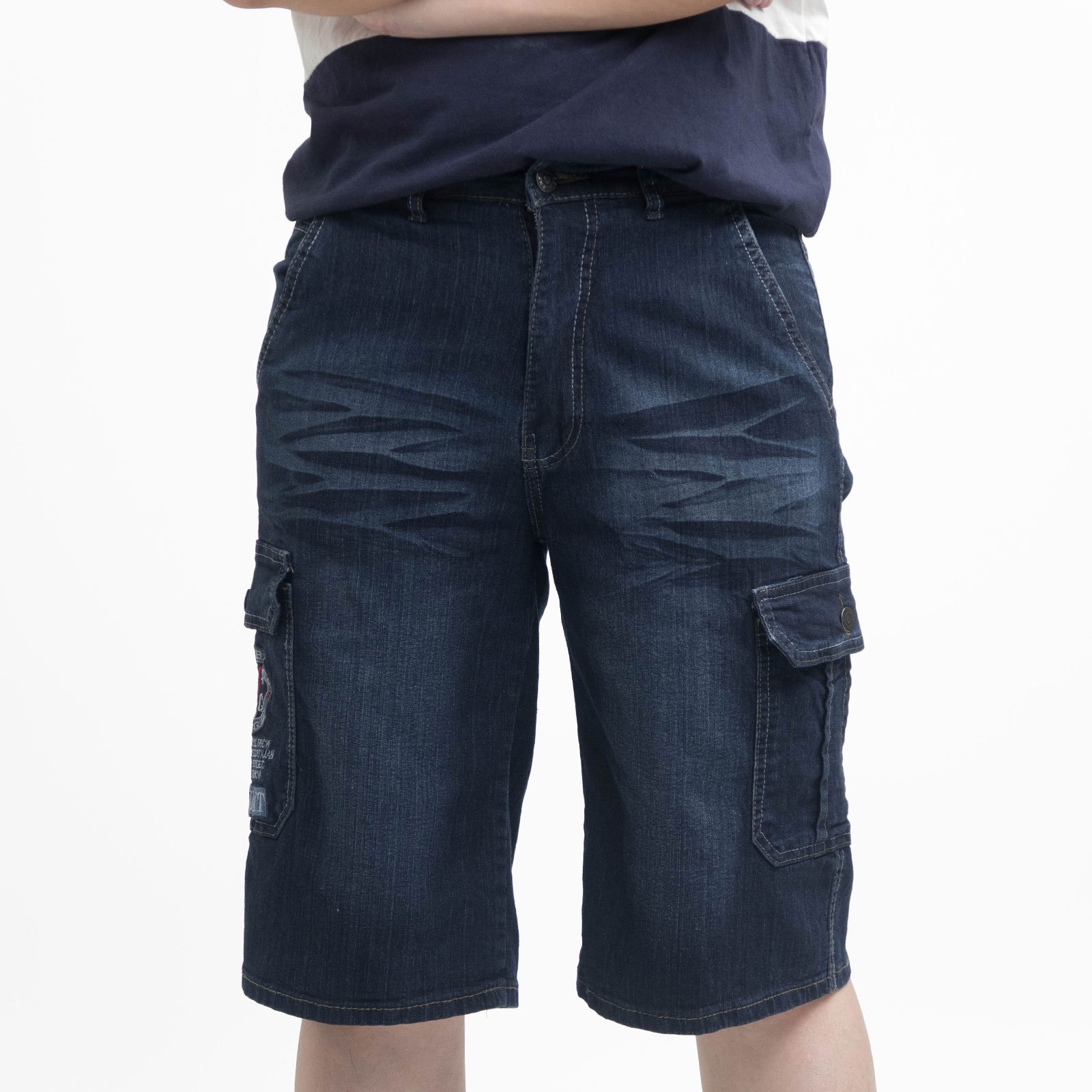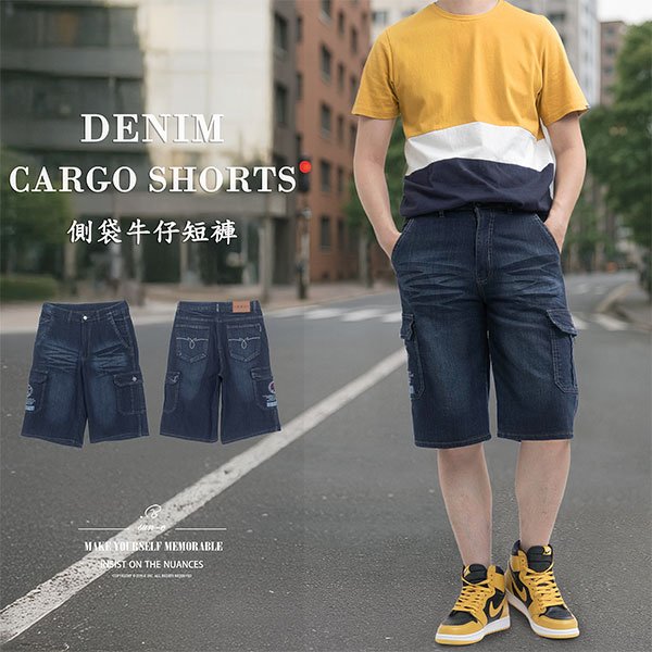 sun-e側袋牛仔短褲、牛仔側袋褲、工作短褲、丹寧工裝褲、側貼袋彈性牛仔褲、牛仔工作褲、車繡口袋丹寧短褲、口袋褲、Denim Cargo Shorts、Jeans Shorts、Cargo Pants、Side-Patch Pockets Stretch Jeans、Denim Shorts、Short Pants、Embroidered Pockets Jeans (321-0151-21)深牛仔 M L XL 2L 3L 4L 5L (腰圍:28~41英吋 / 71~104公分) 男 [實體店面保障]