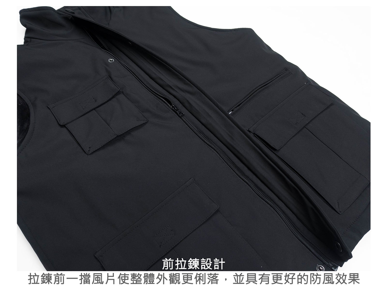 拉鍊前一擋風片使整體外觀更俐落,並具有更好的防風效果。