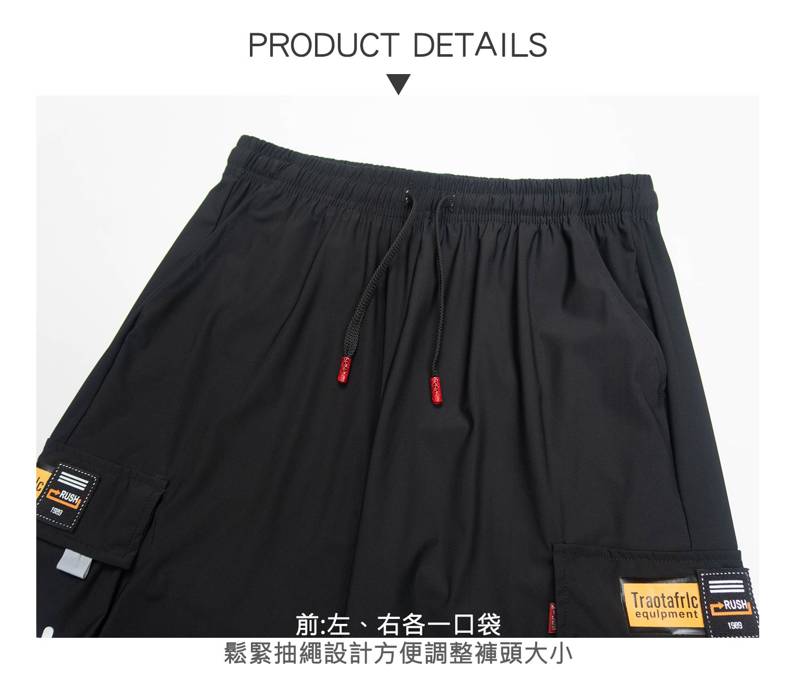 冰感彈力布料,鬆緊腰設計,側袋收納便利,