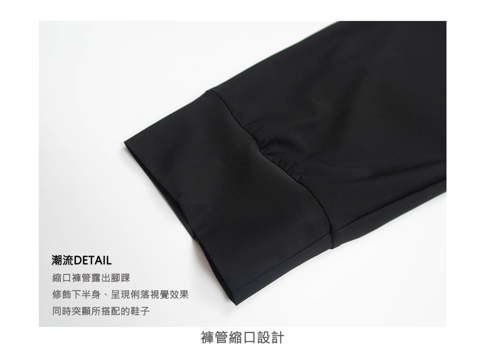 鬆緊帶縮口褲管。