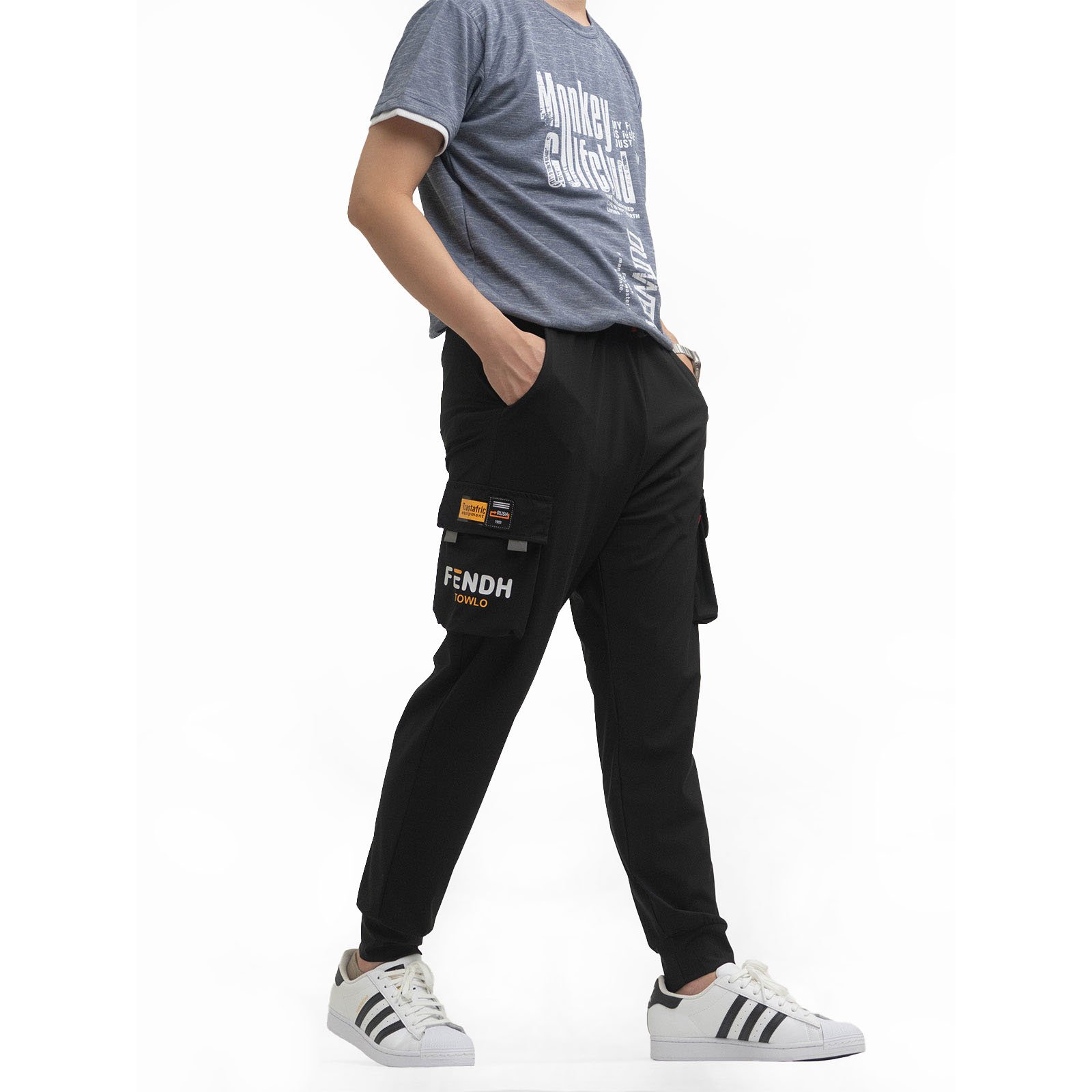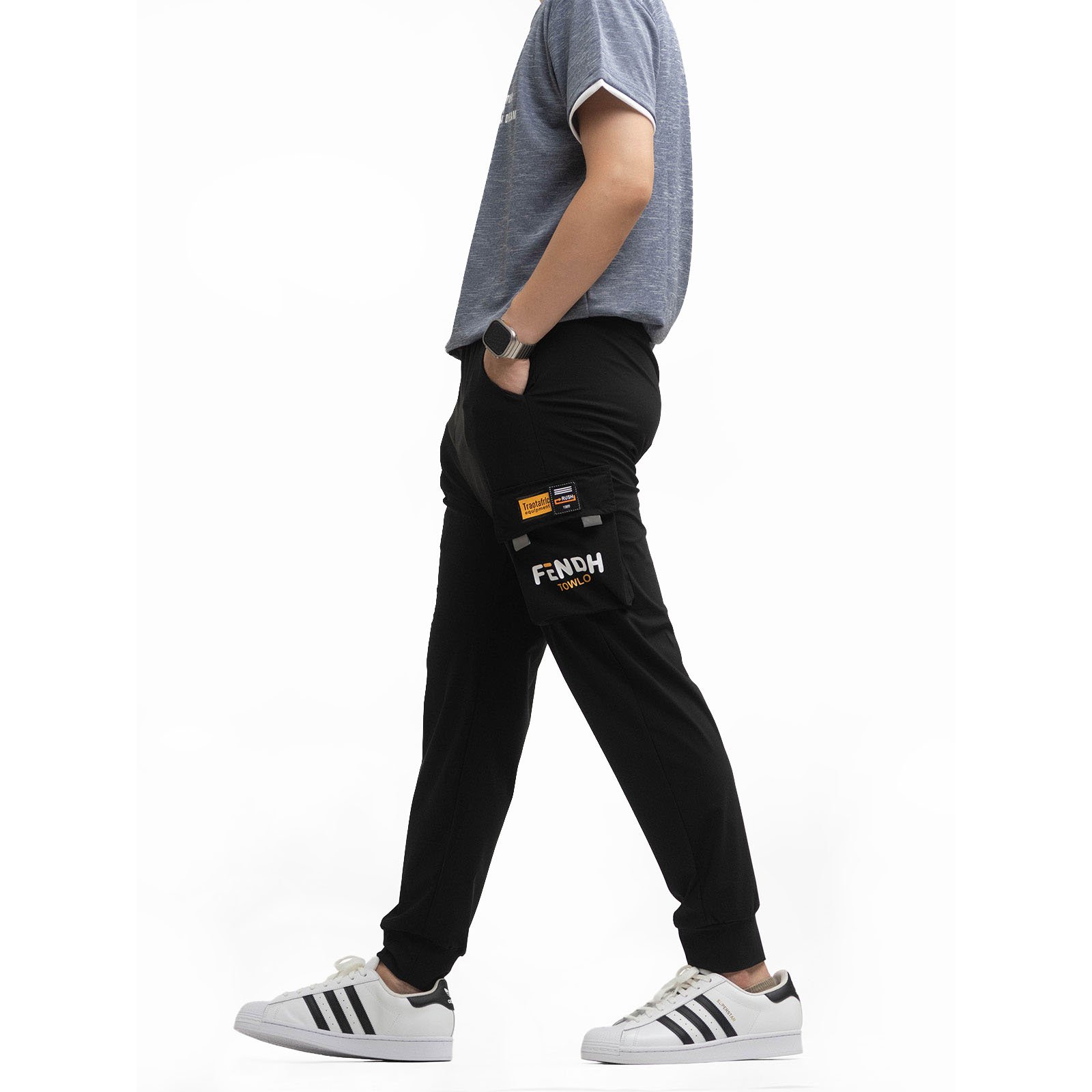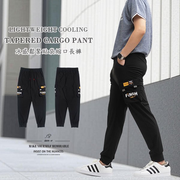 sun-e冰感鬆緊貼袋縮口長褲 束口褲管工作褲 側袋褲 修身休閒褲 多口袋工作長褲 鬆緊腰圍側貼袋休閒長褲 夏季薄款長褲 工裝褲 彈力褲 縮腳褲 束腳褲 Lightweight Cooling Tapered Cargo Pants Cargo Pants Slim Casual Pants (321-1861-21)黑色 M L XL 2L (腰圍:28~37英吋/71~94公分) 男 [實體店面保障]
