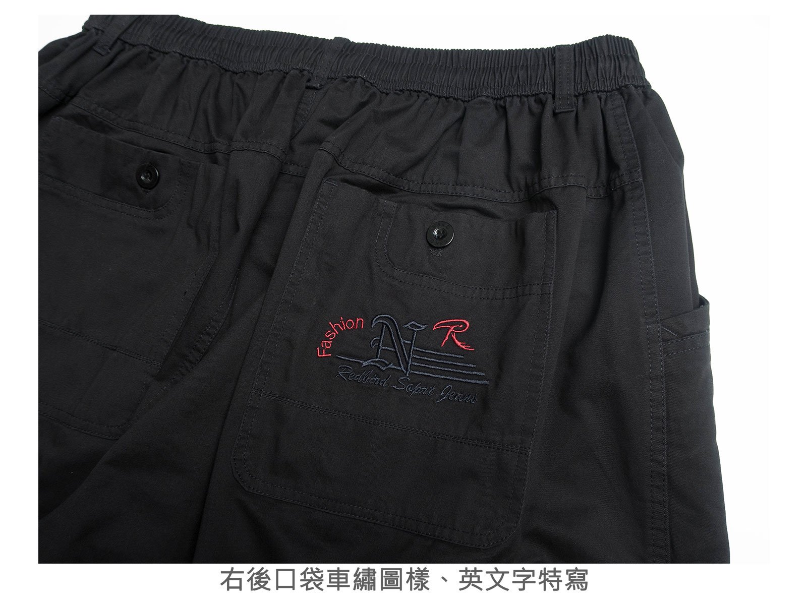 後腰圍鬆緊帶,內綁繩設計可自行調整腰圍大小。