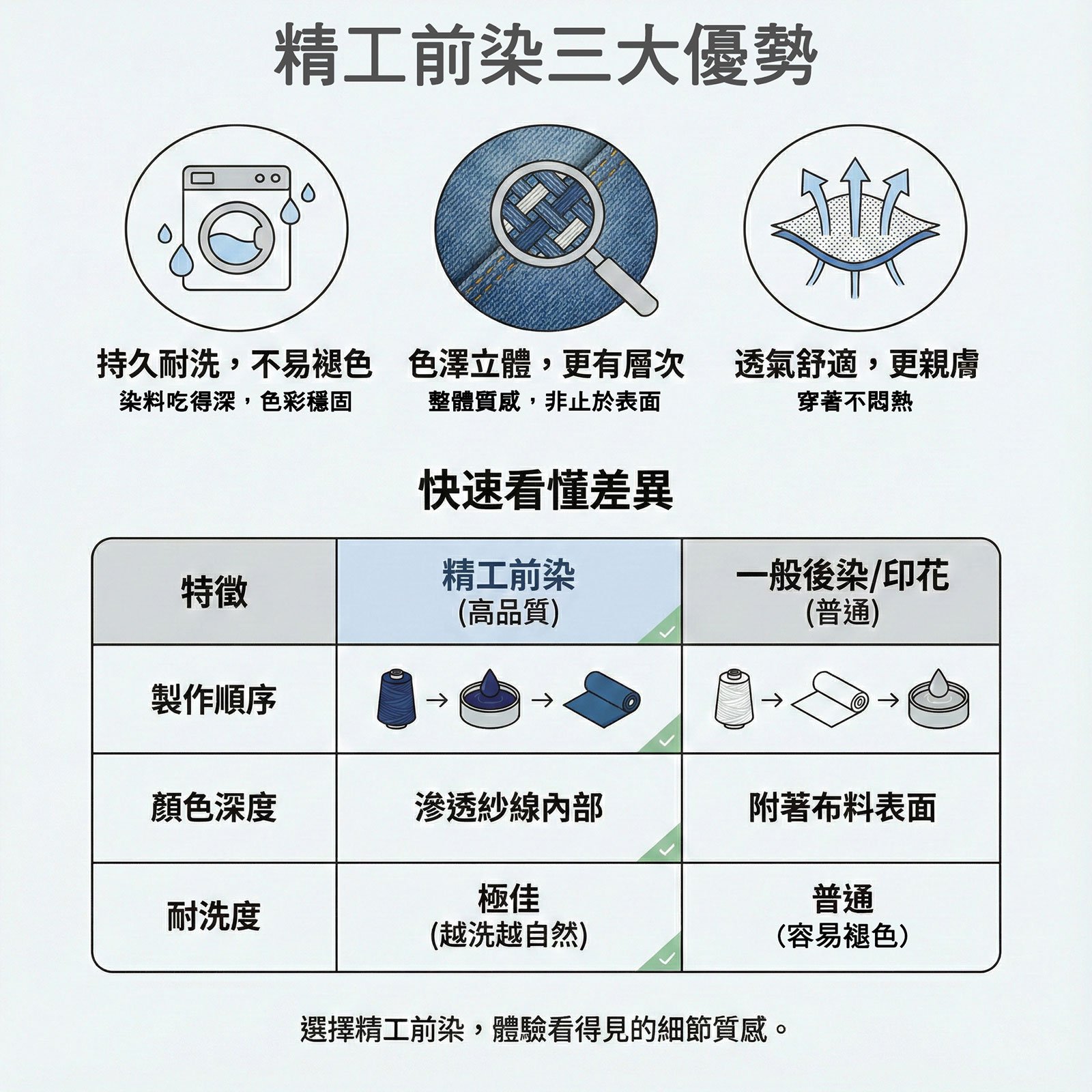確保布料色澤立體飽滿、耐洗不易褪色,同時維持布料的透氣性,展現極致質感。