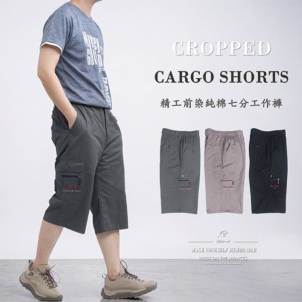 sun-e精工前染輕薄七分褲、七分工作褲、多口袋純棉七分褲、側貼袋休閒短褲、側袋褲、工作短褲、工裝褲、七分休閒褲、滑板褲、Yarn-Dyed Lightweight Cropped Cargo Shorts、Side Patch Pockets Cotton Cropped Pants、Cargo Pants、Casual Pants、Skate Pants (327-3120-01)卡其灰、(327-3120-02)灰綠色、(327-3120-03)黑色 L XL (腰圍:32~38英吋/81~97公分) 男 [實體店面保障]