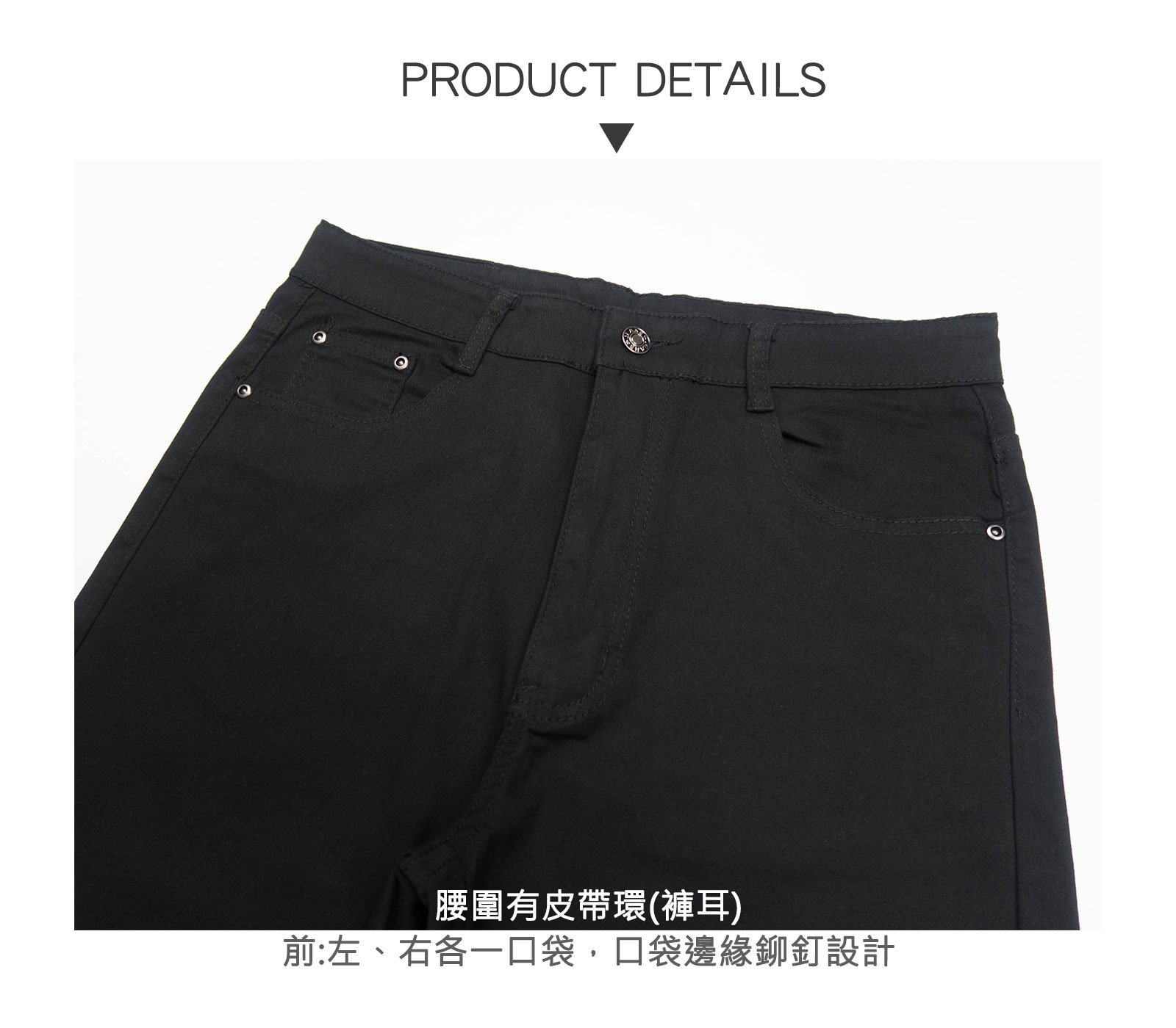 腰圍有皮帶環(褲耳)、褲檔使用拉鍊設計。