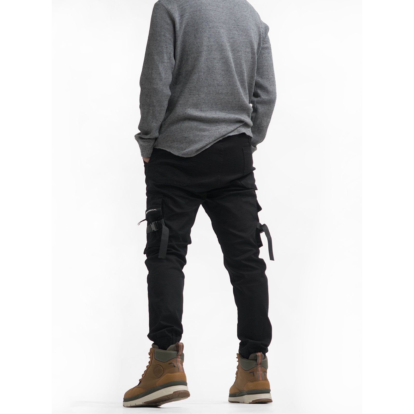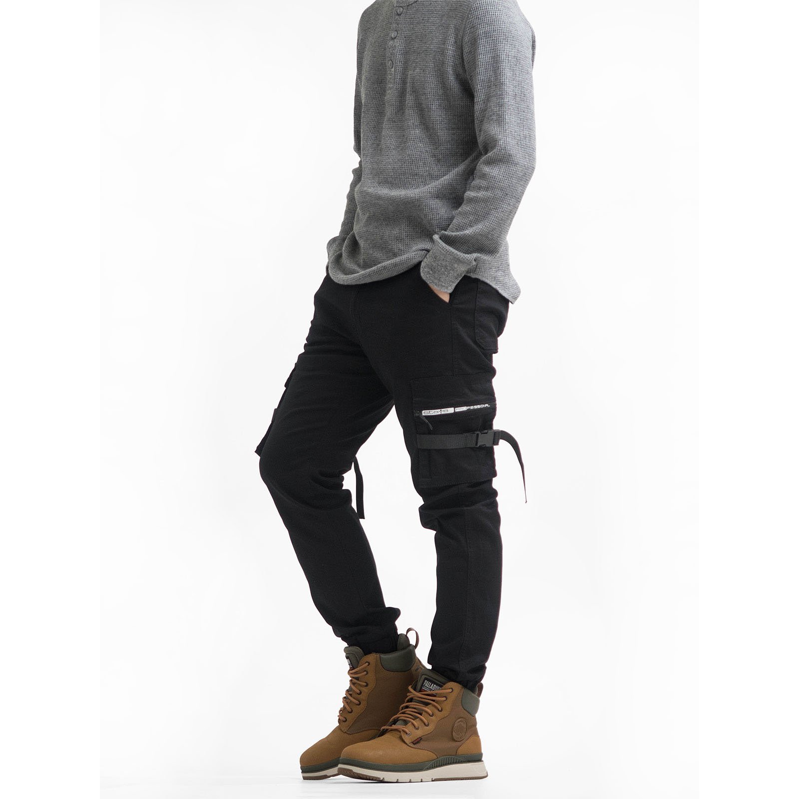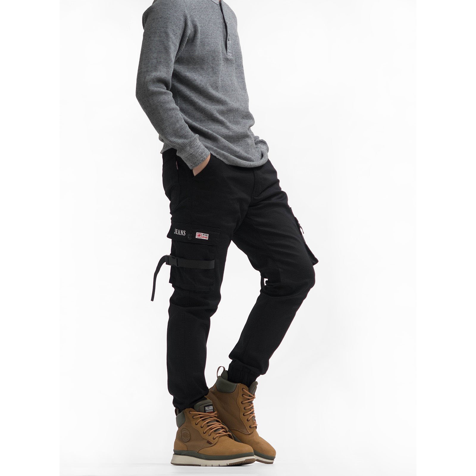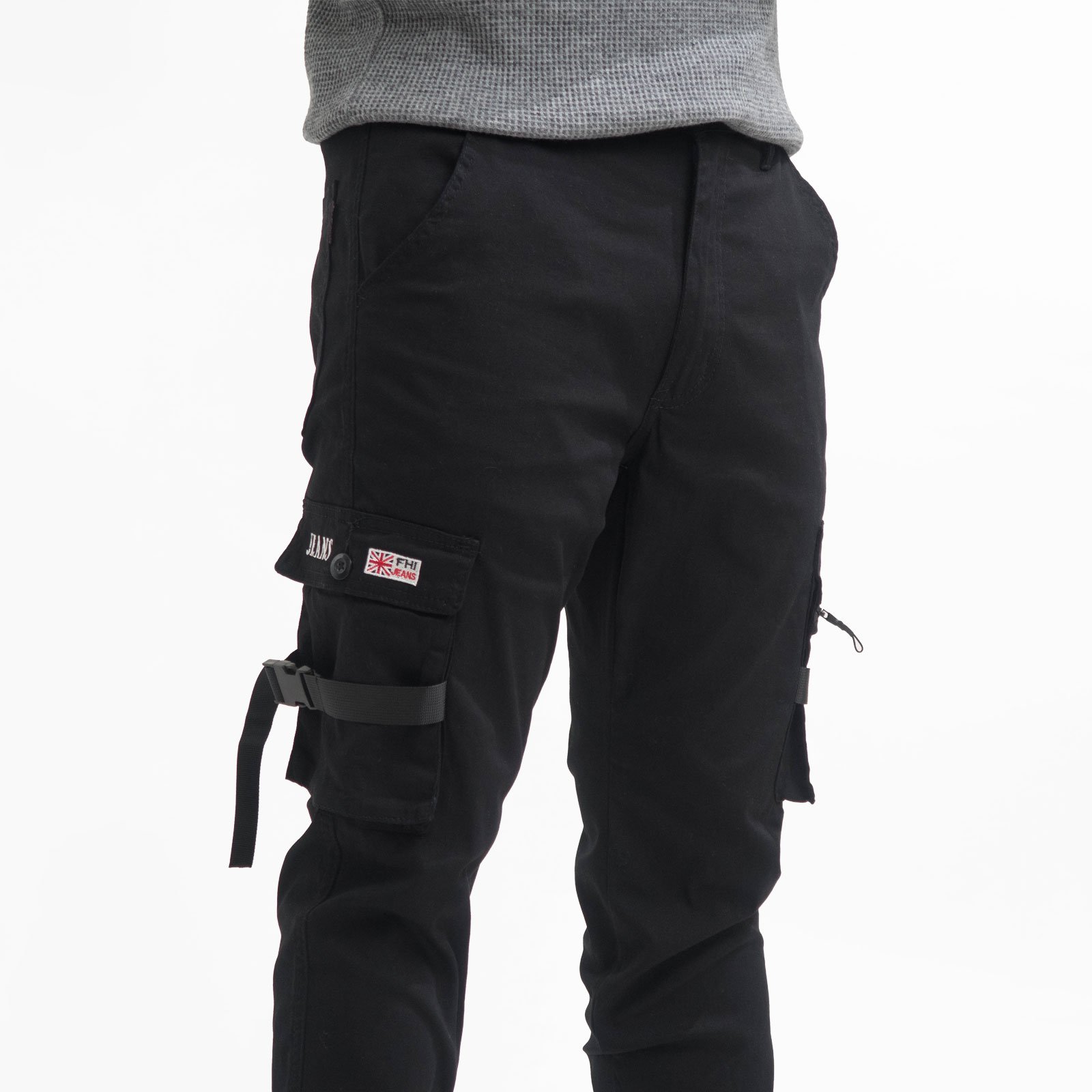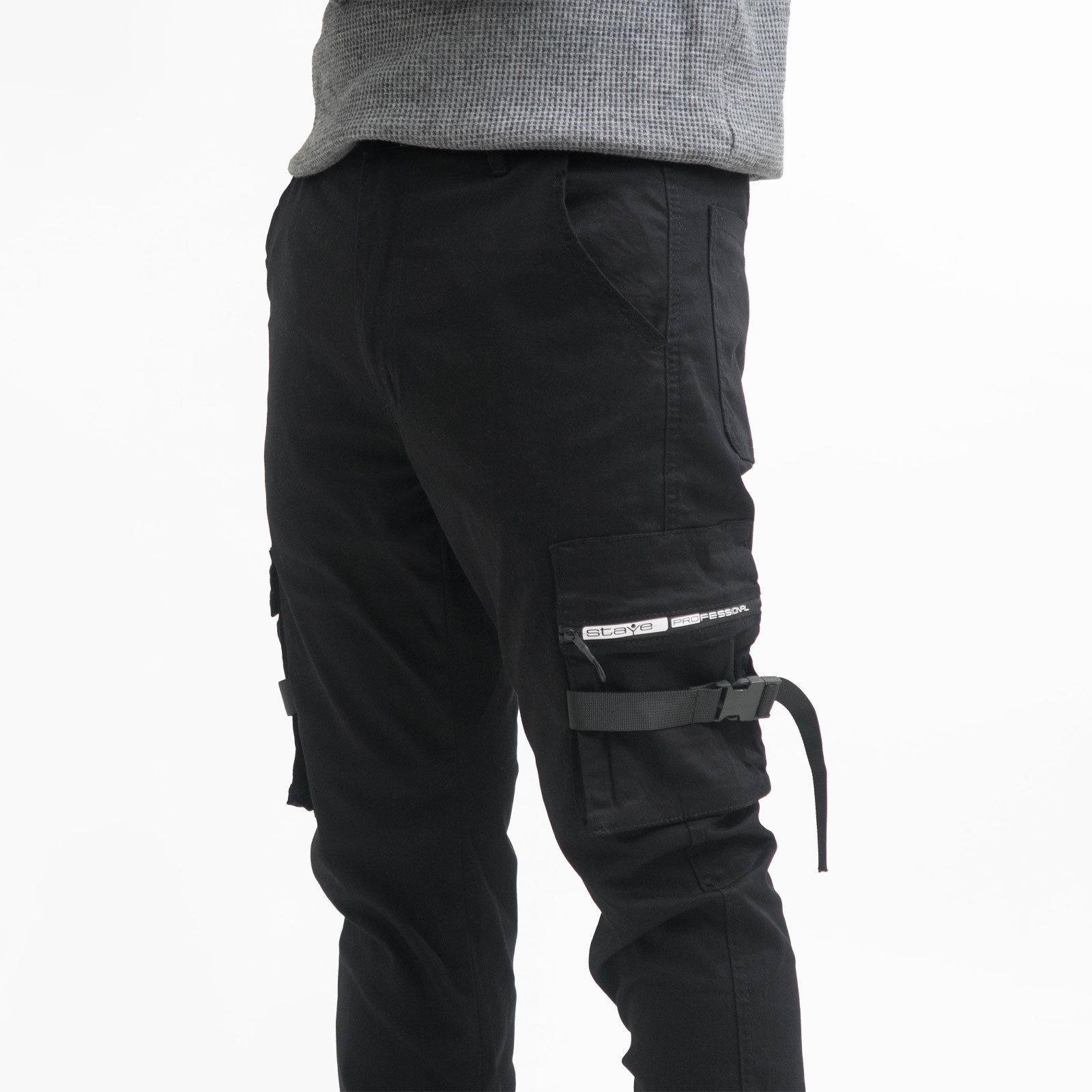 [零碼促銷]伸縮側袋縮口褲 束口褲管工作褲 側袋褲 修身休閒褲 多口袋工作長褲 工裝褲 口袋褲 縮腳褲 束腳褲 Tapered Cargo Pant Cargo Pants Slim Casual Pants (337-2085-21)黑色 M L XL 2L 3L(腰圍:28~37英吋/71~94公分) 男 [實體店面保障] sun-e