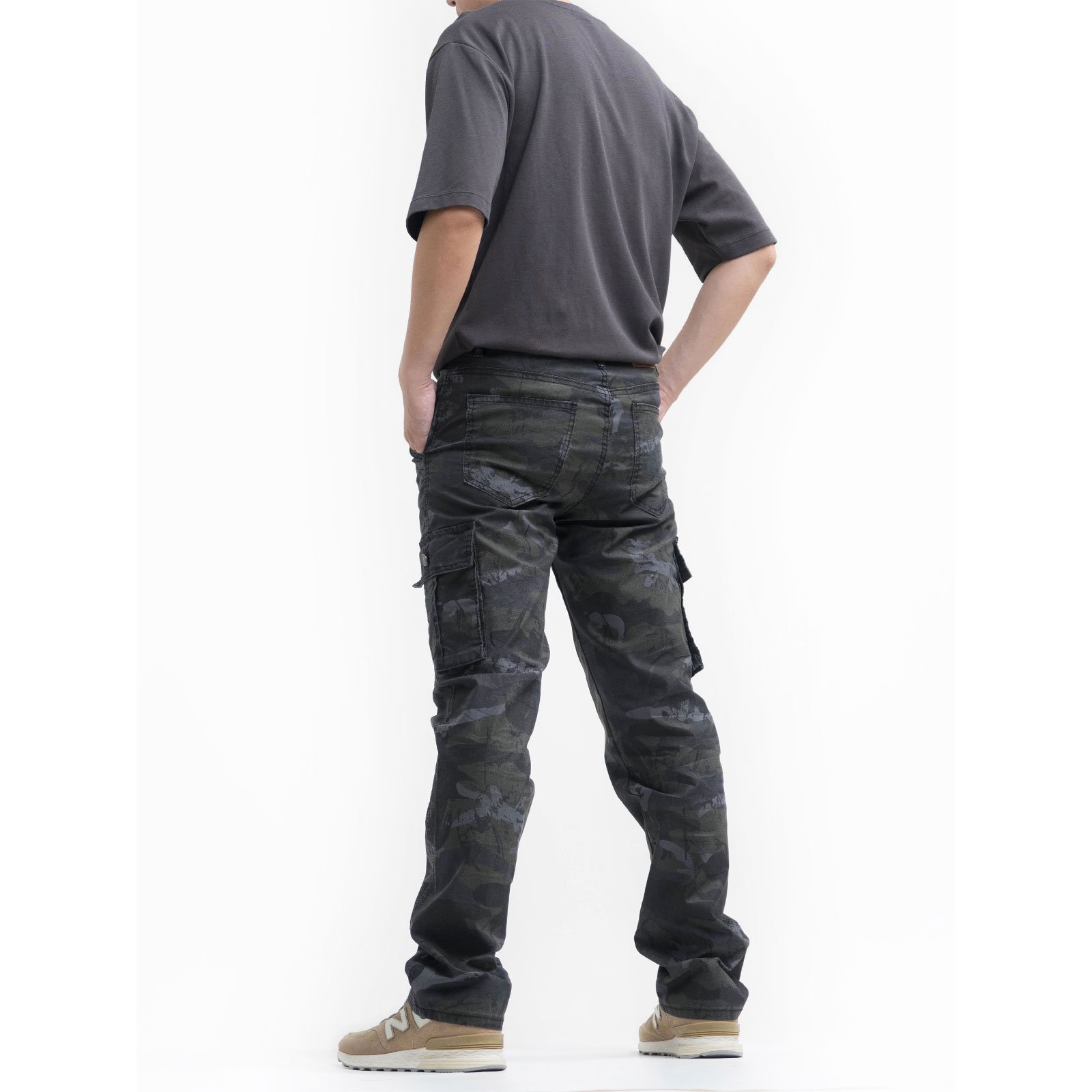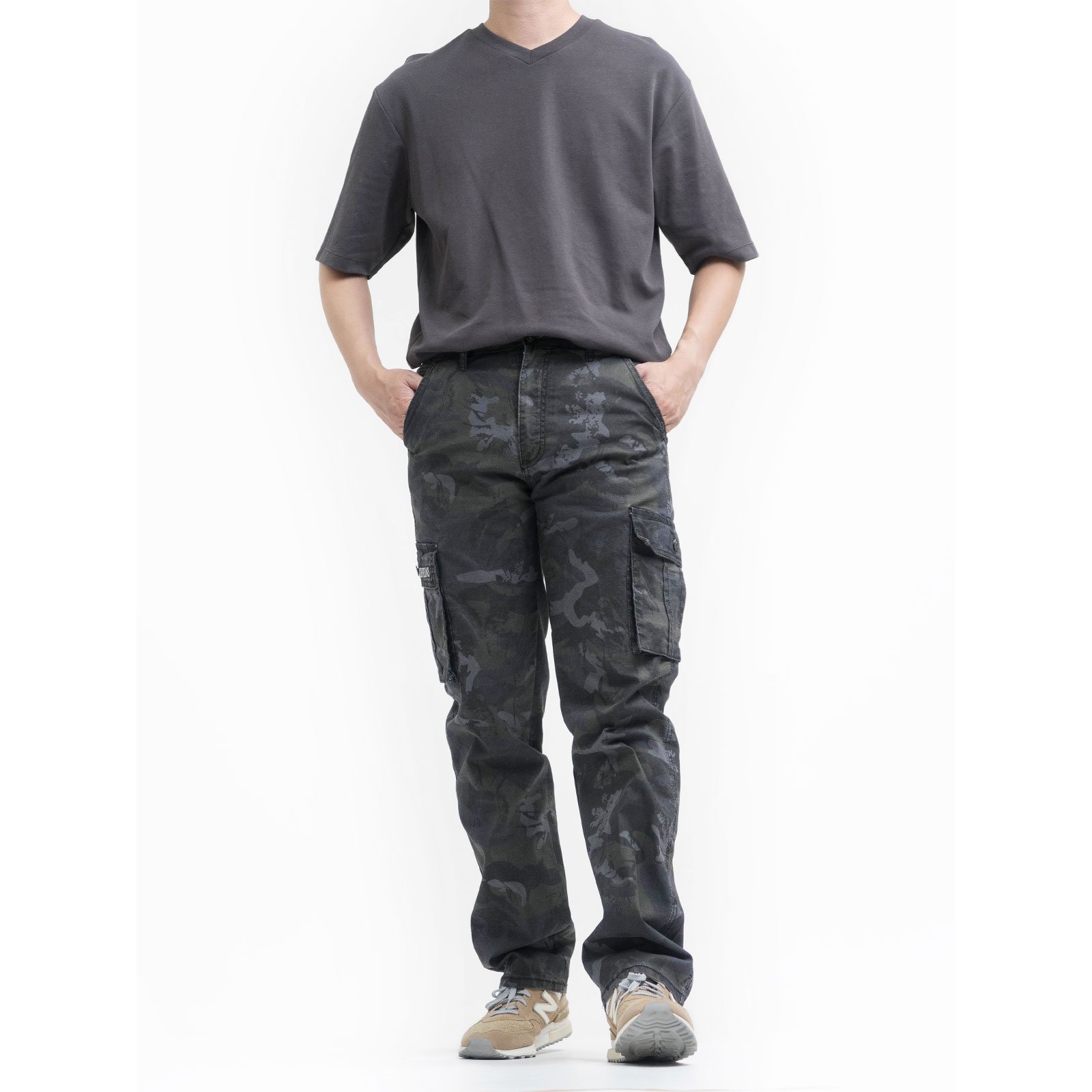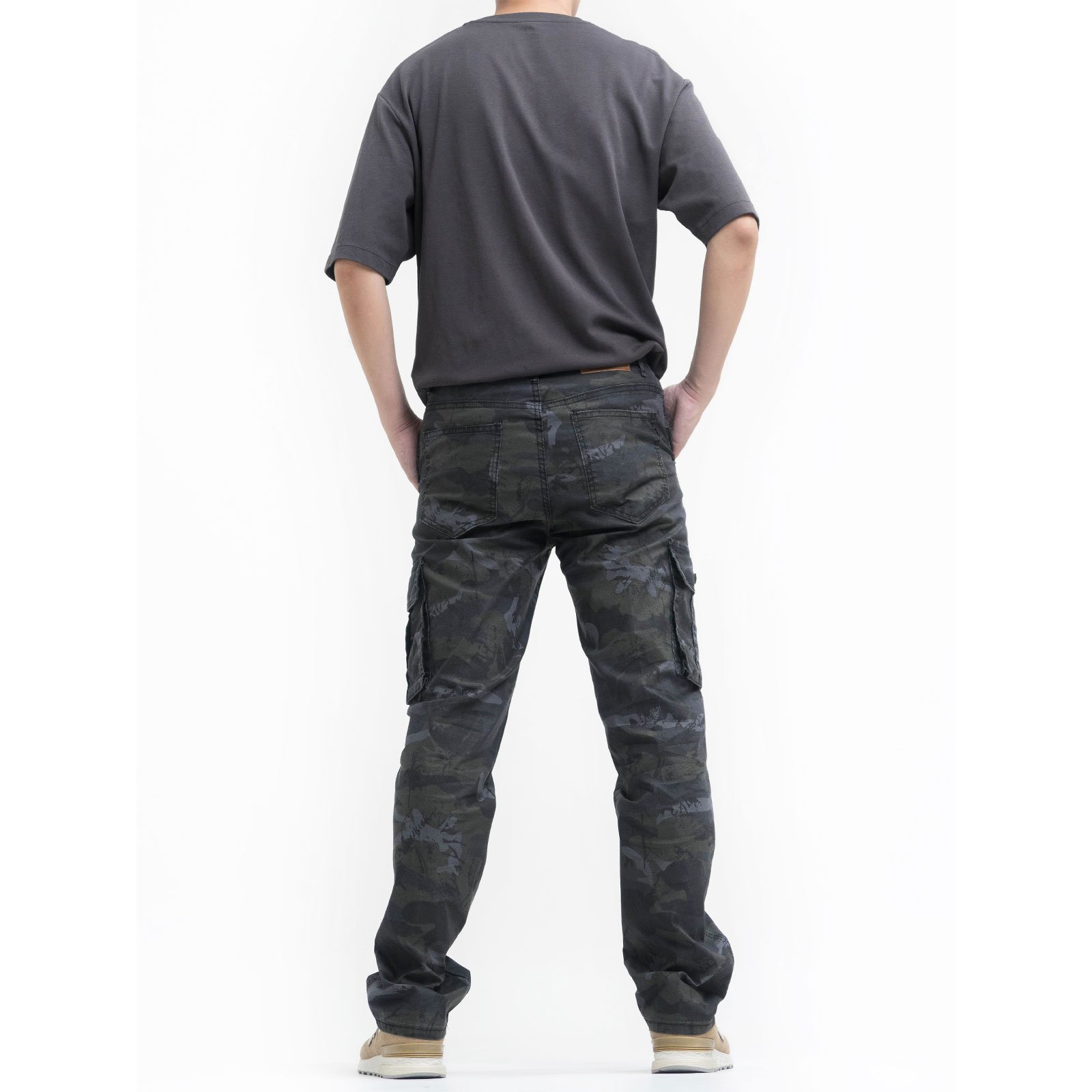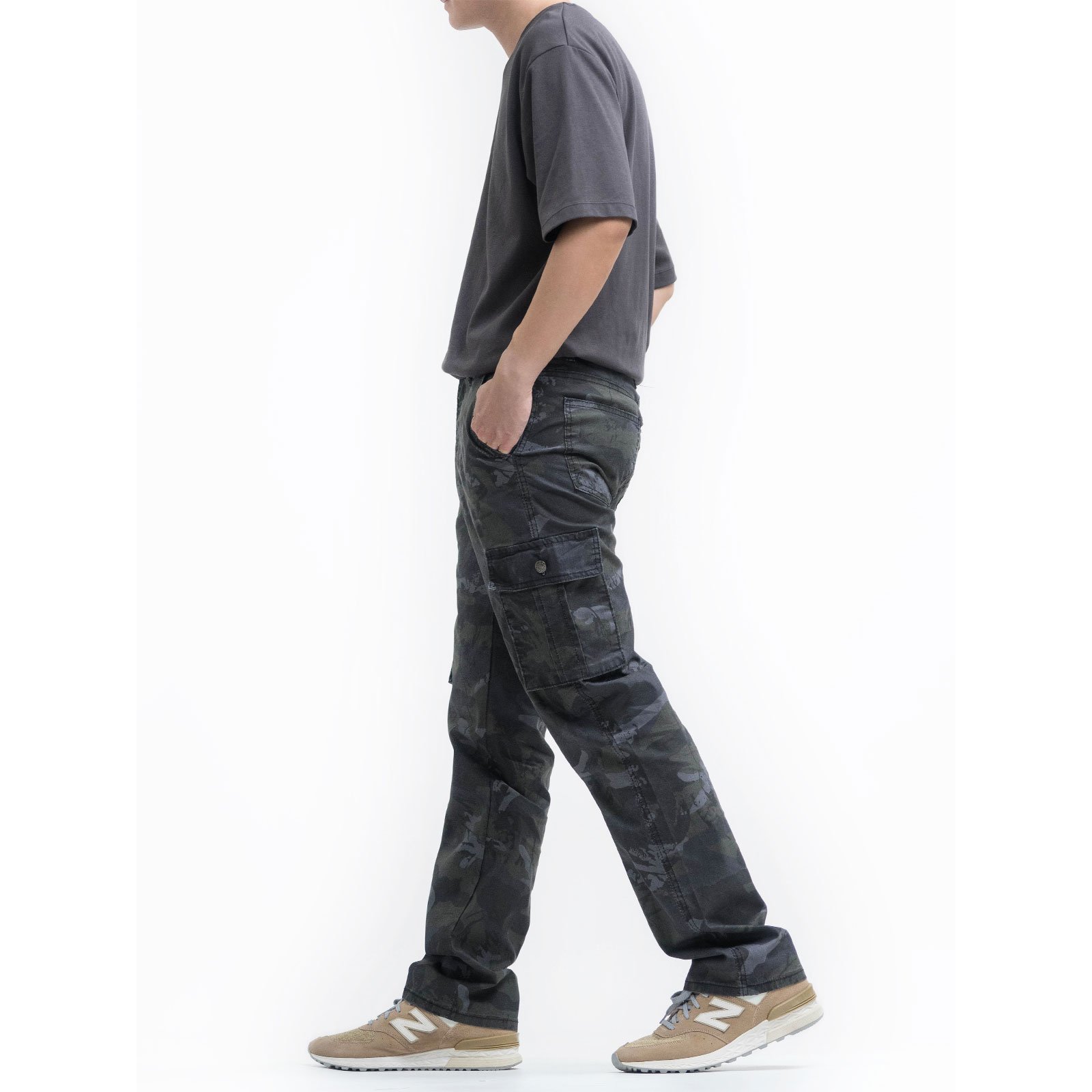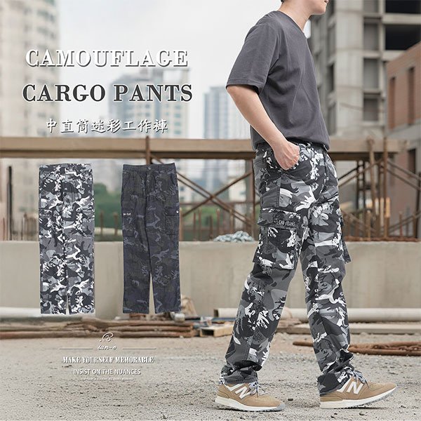 中直筒彈性側袋迷彩工作長褲,柔棉舒適好穿,