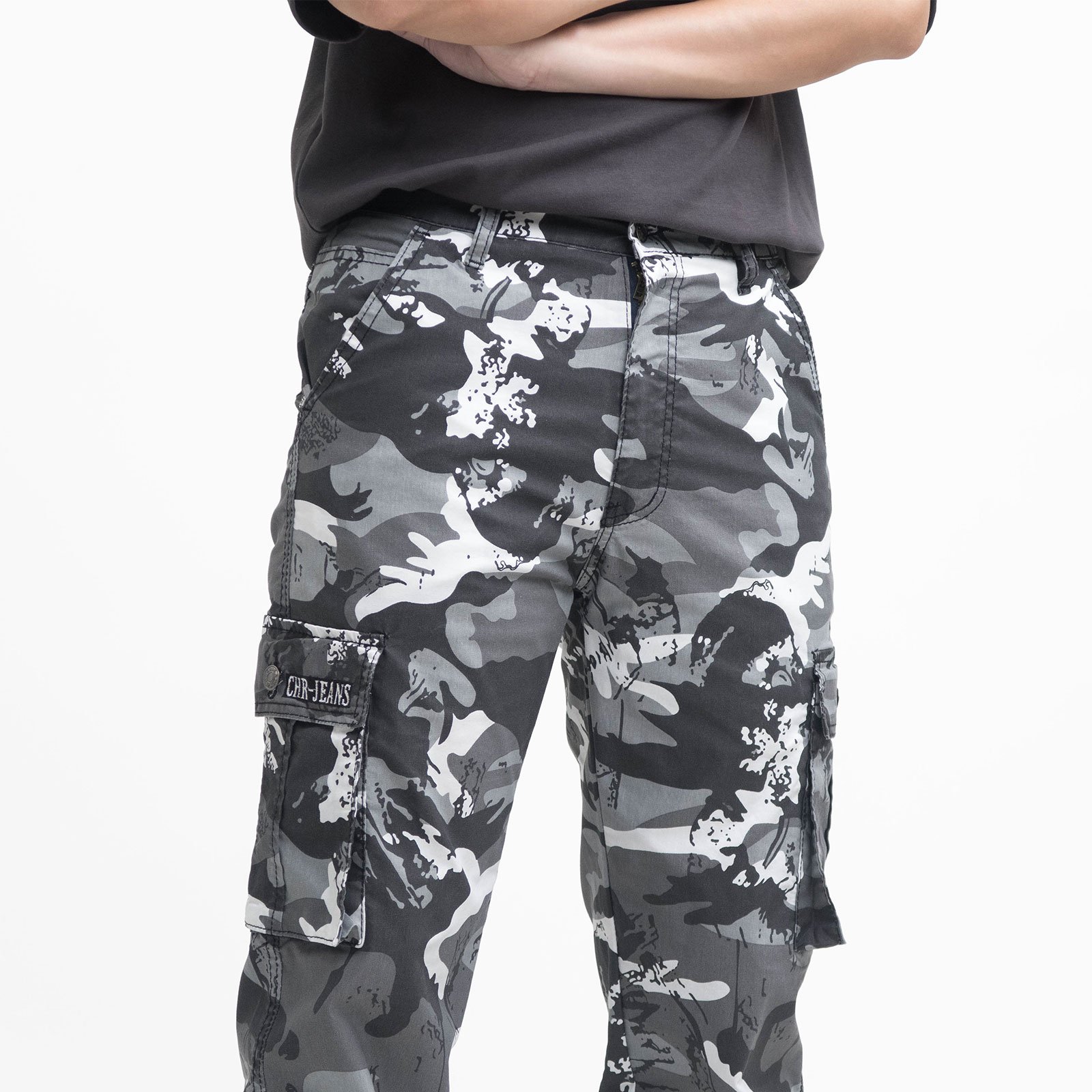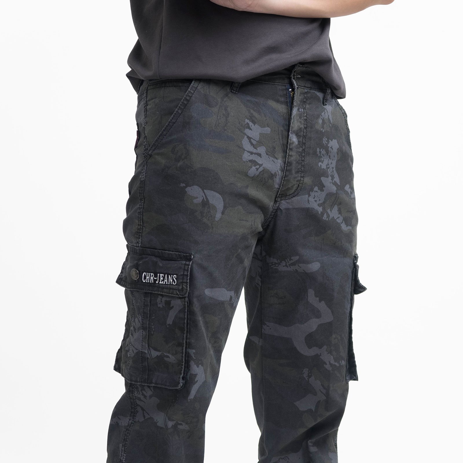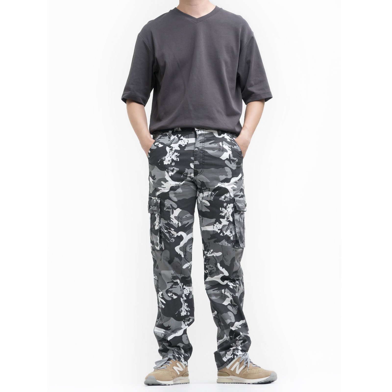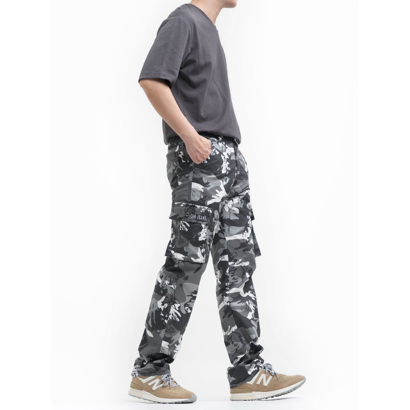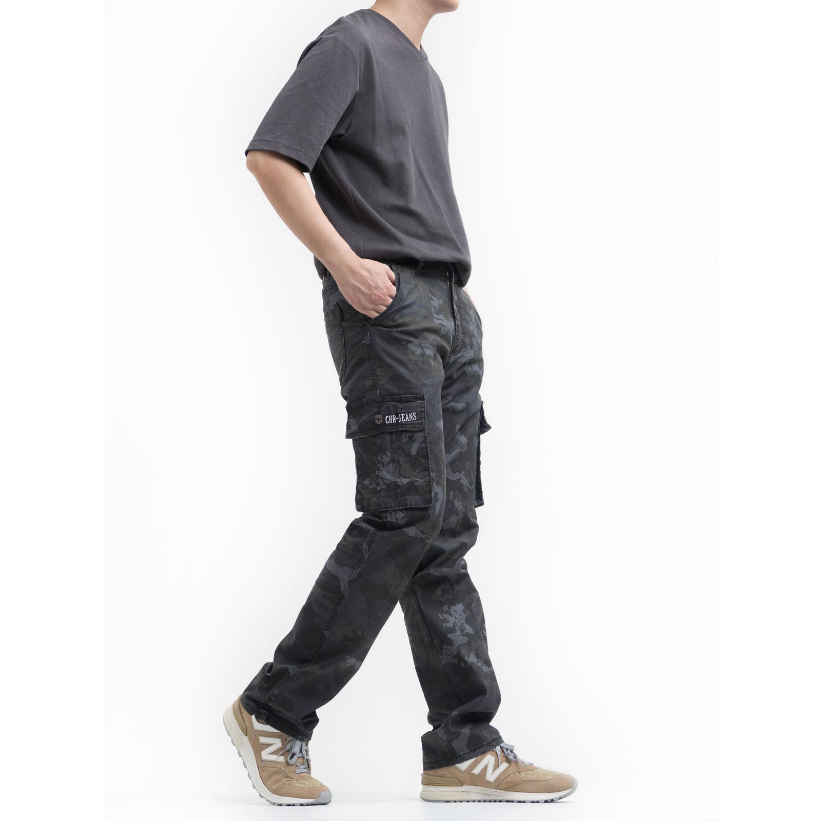 中直筒彈性側袋迷彩工作長褲,柔棉舒適好穿,