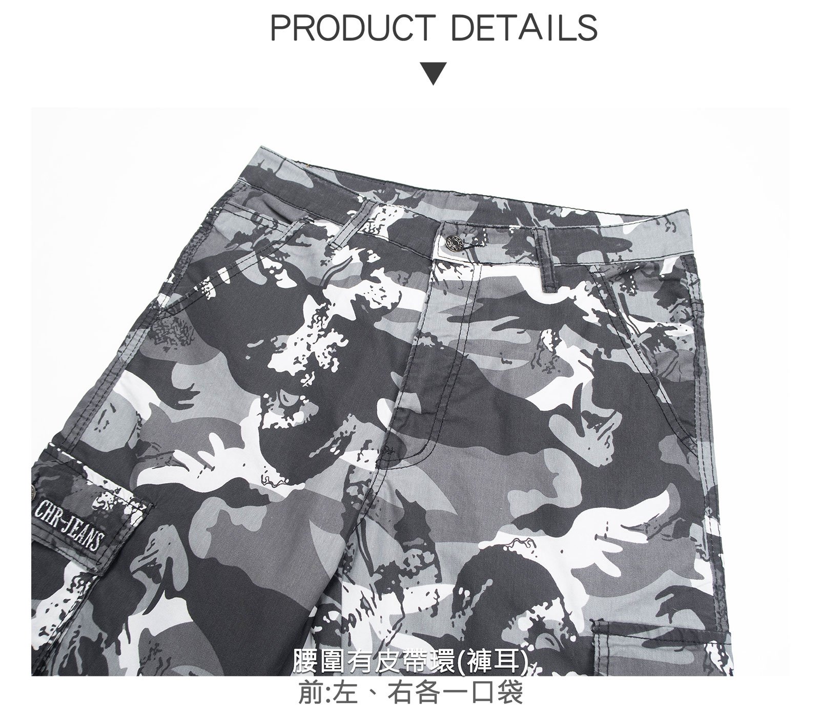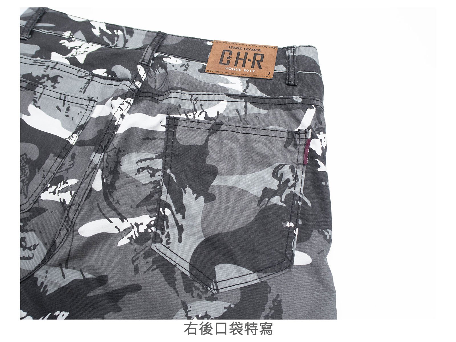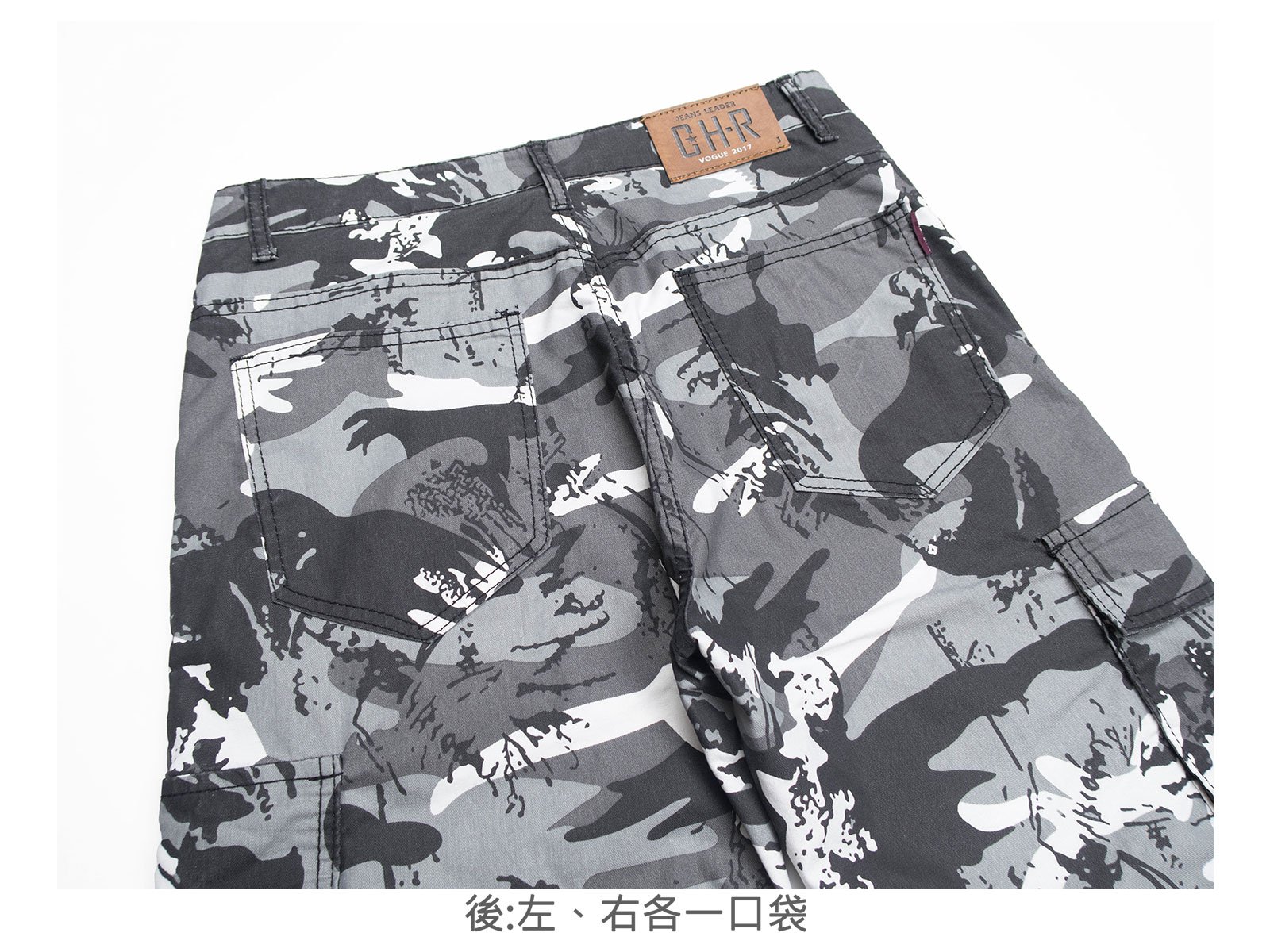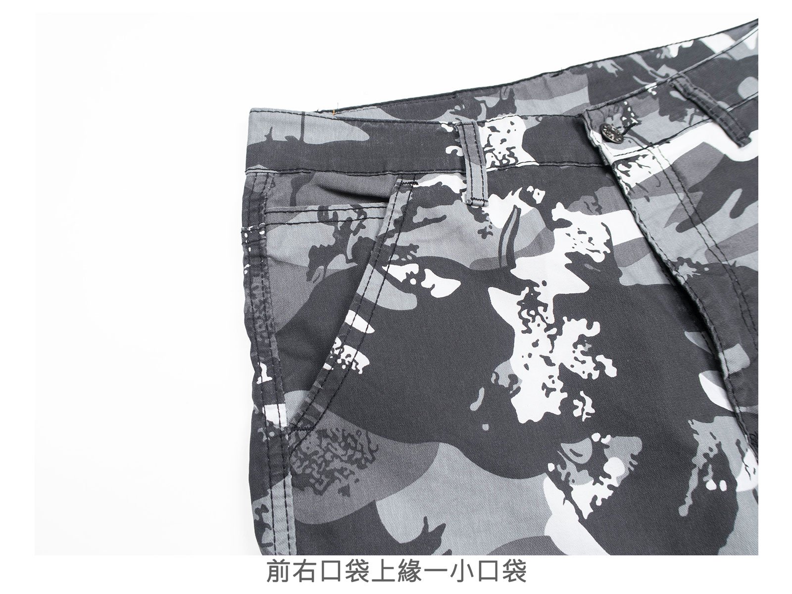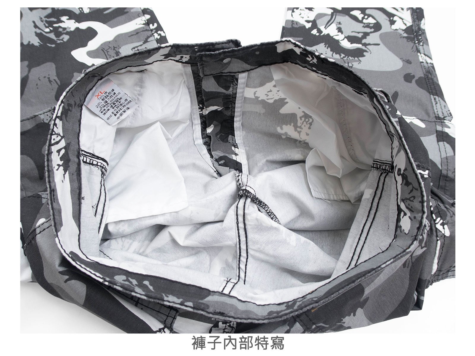迷彩褲身,伸縮有彈性。