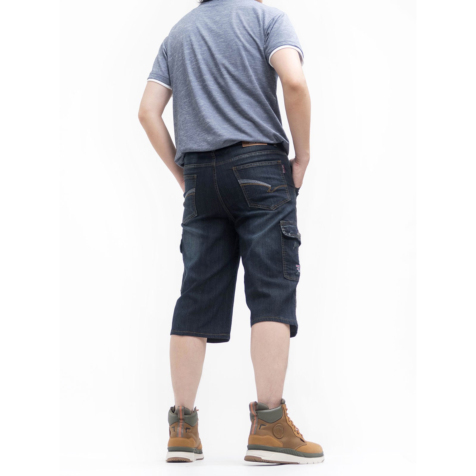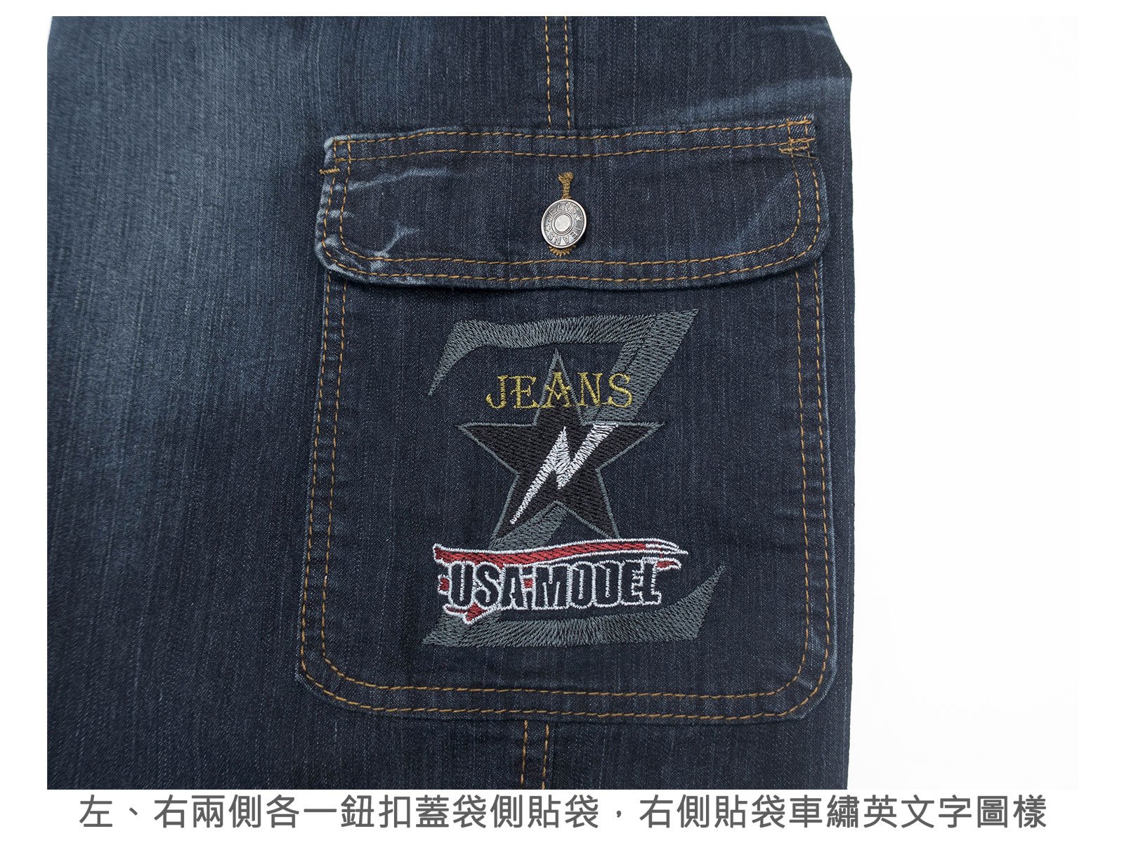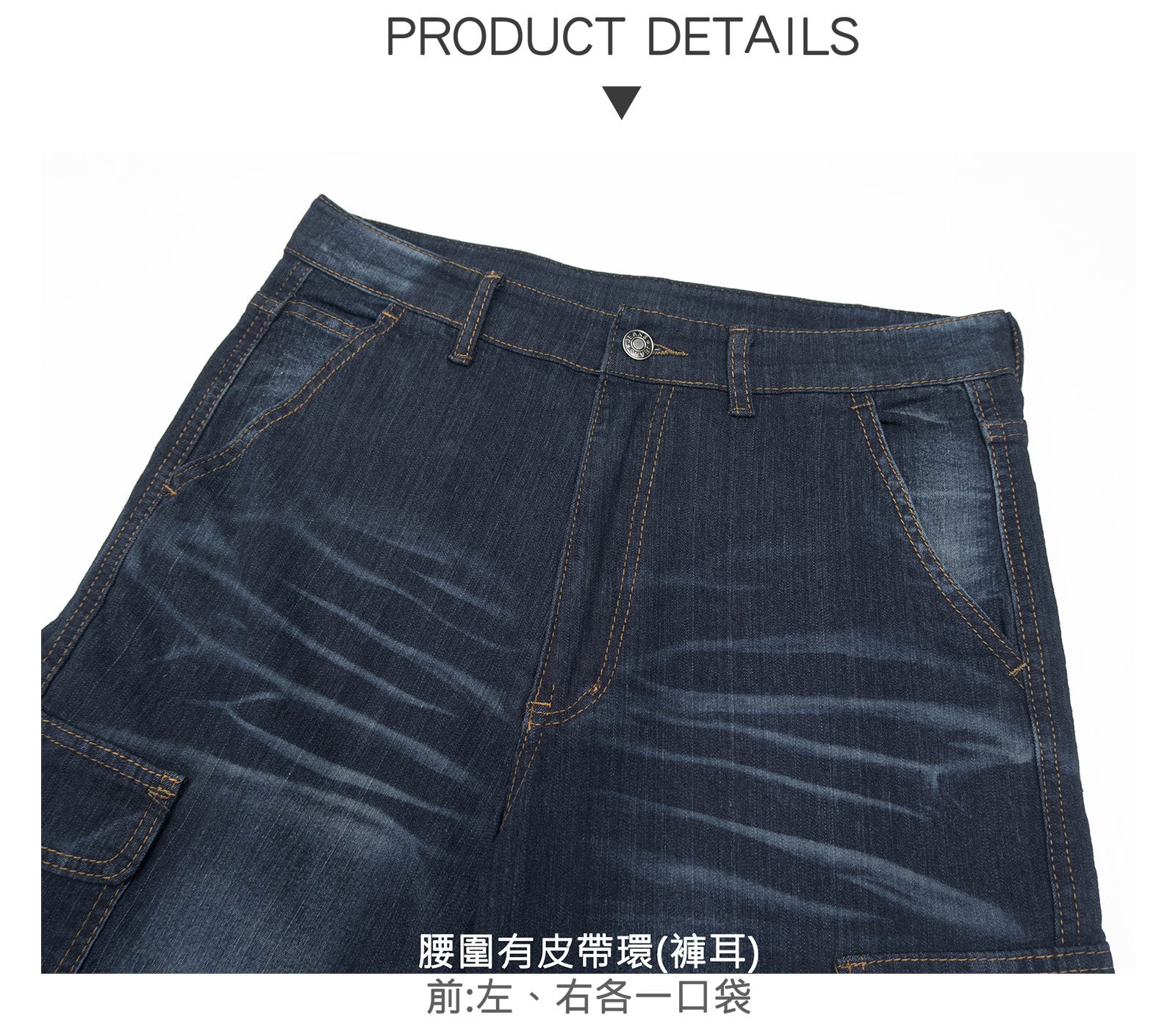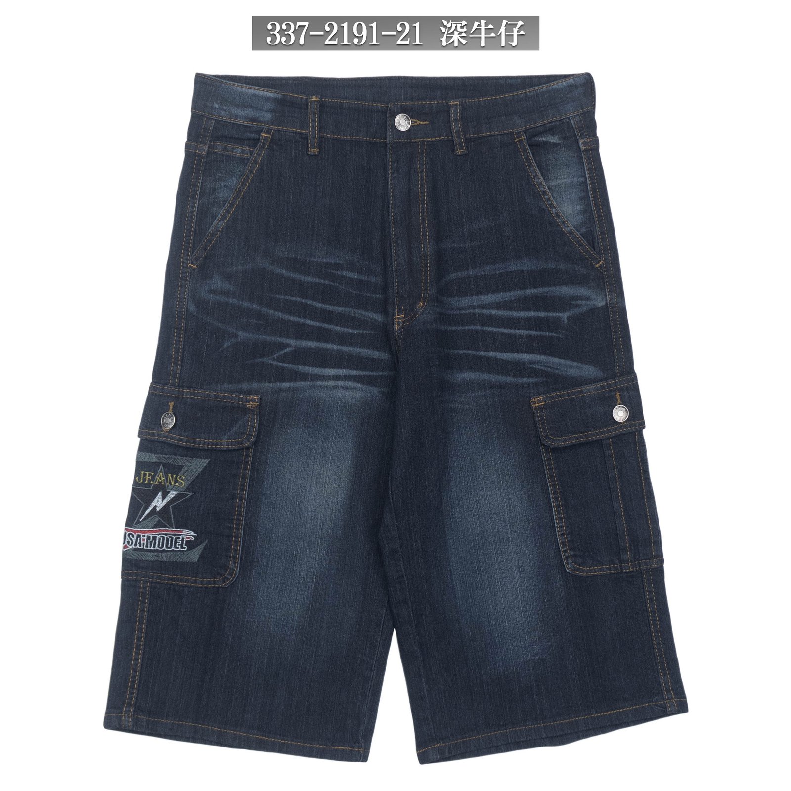sun-e七分牛仔褲、牛仔側袋褲、彈性牛仔短褲、七分工作褲、牛仔七分褲、工作短褲、牛仔工作褲、丹寧七分褲、七分側袋褲、車繡口袋刷紋丹寧短褲、多口袋刷白牛仔褲、側貼袋工裝褲、口袋褲、Cropped Jeans、Cargo Jeans、Cropped Pants、Denim Shorts、Cargo Shorts、Cargo Pants、Short Pants、Embroidered Pockets Stretch Jeans (337-2191-21)深牛仔 L XL 2L 3L 4L 5L (腰圍:30~41英吋 / 76~104公分) 男 [實體店面保障]