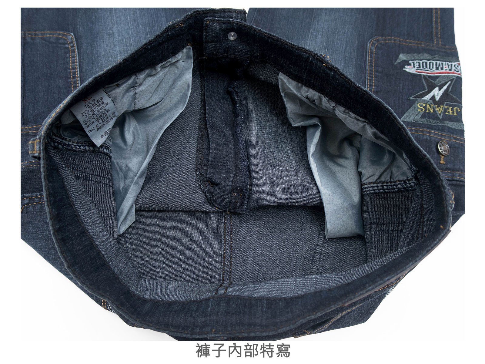 腰圍有皮帶環(褲耳)、褲檔有拉鍊。