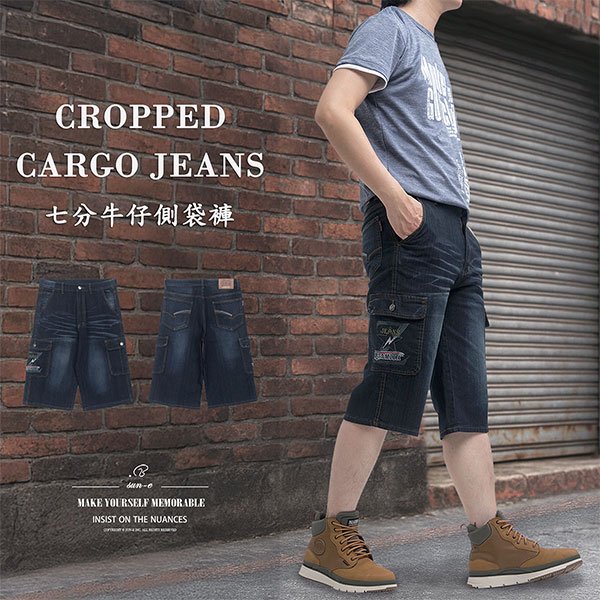 七分牛仔褲 牛仔側袋褲 彈性牛仔短褲 七分工作褲 牛仔七分褲 工作短褲 牛仔工作褲 丹寧七分褲 七分側袋褲 車繡口袋刷紋丹寧短褲 多口袋刷白牛仔褲 側貼袋工裝褲 Cropped Jeans Cargo Jeans Cropped Pants Denim Shorts Cargo Shorts Cargo Pants Embroidered Pockets Stretch Jean(337-2191)深牛仔 L XL 2L 3L 4L 5L(腰圍30~41英吋/76~104公分)男[實體店面保障]sun-e