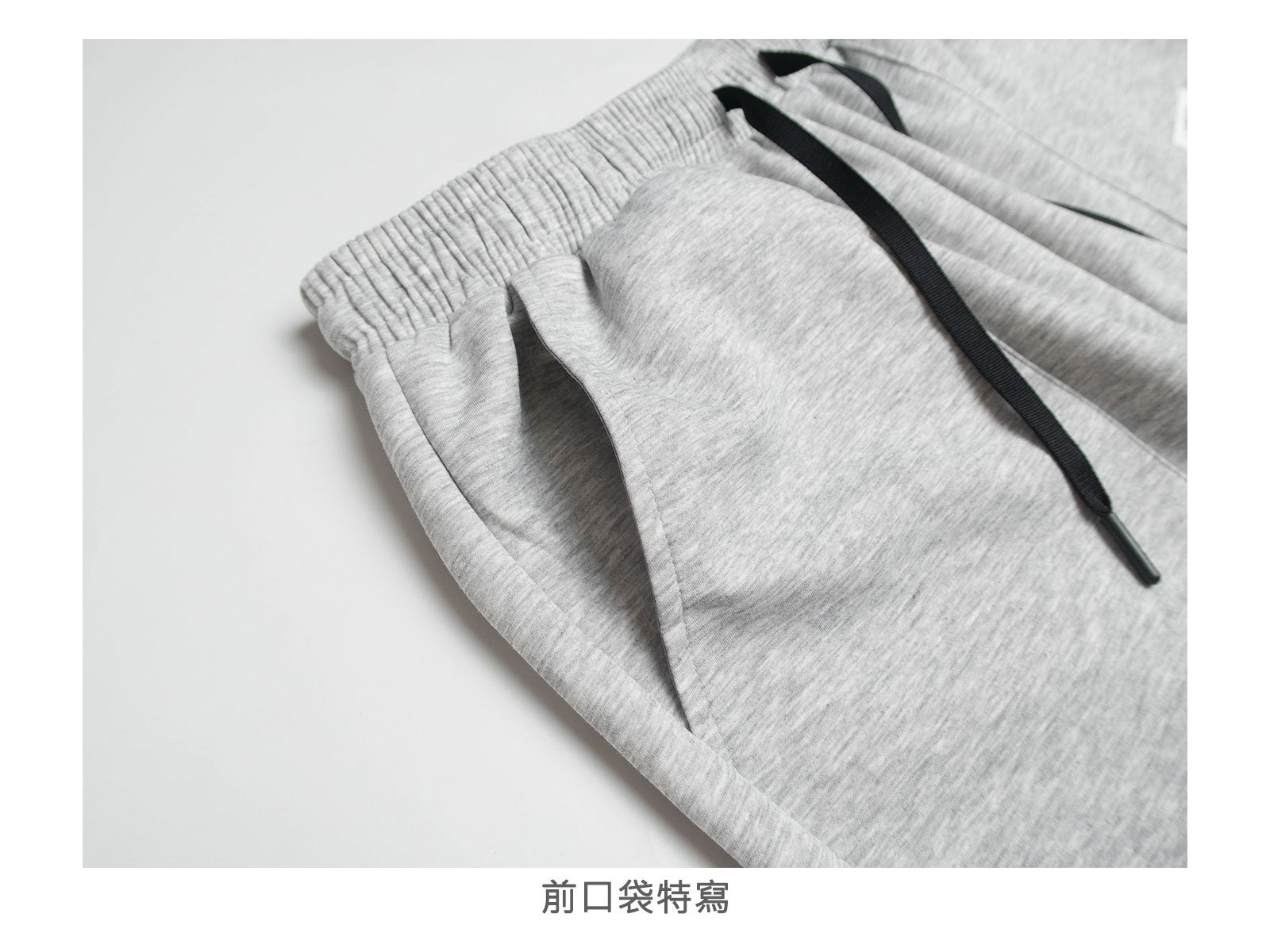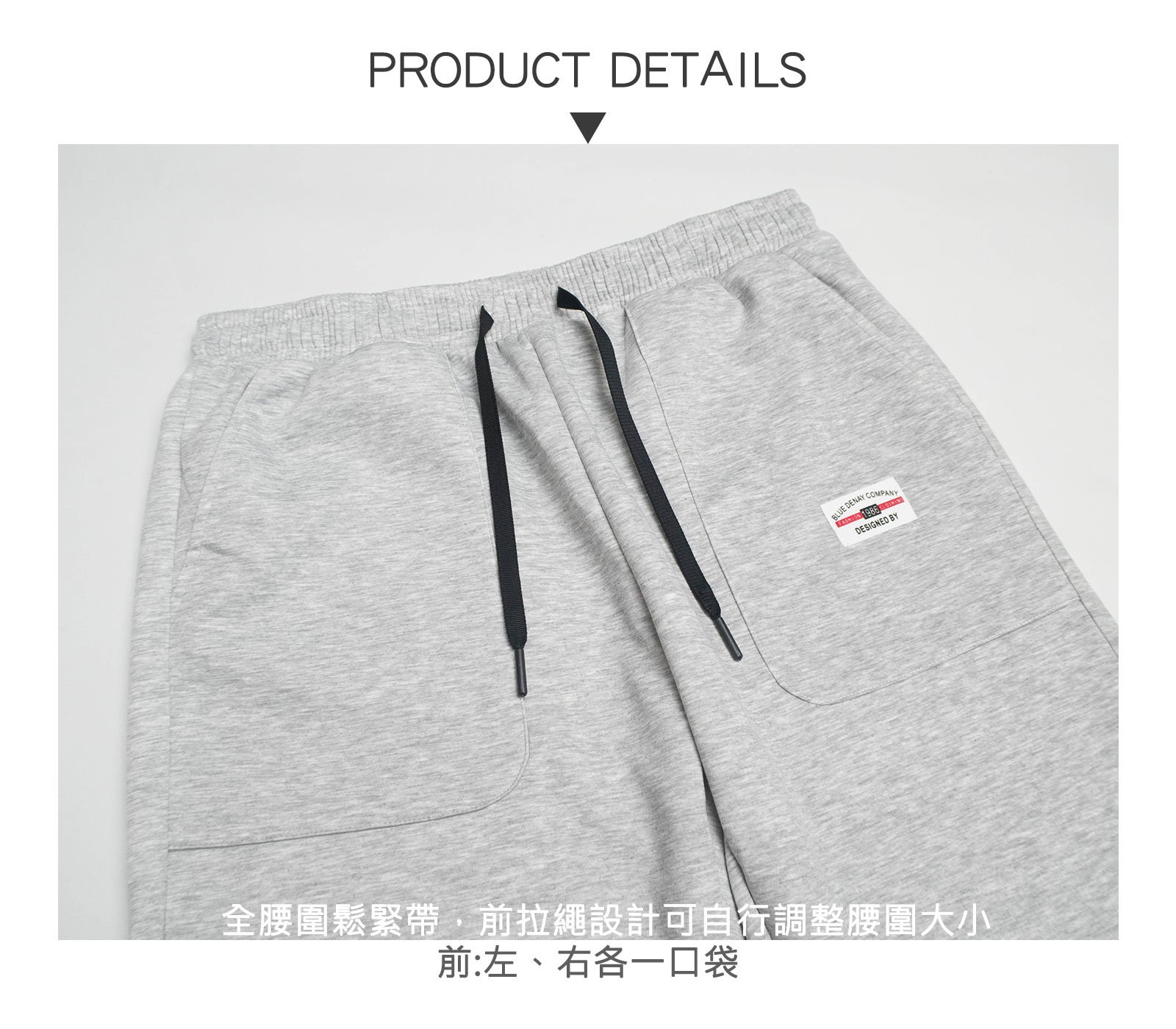 全腰圍彈性鬆緊帶,前拉繩設計可自行調整腰圍大小。
