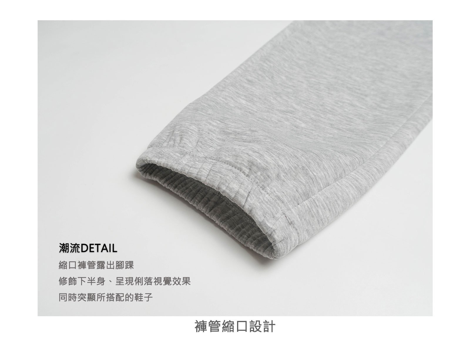 褲管的縮口讓腳踝露出,