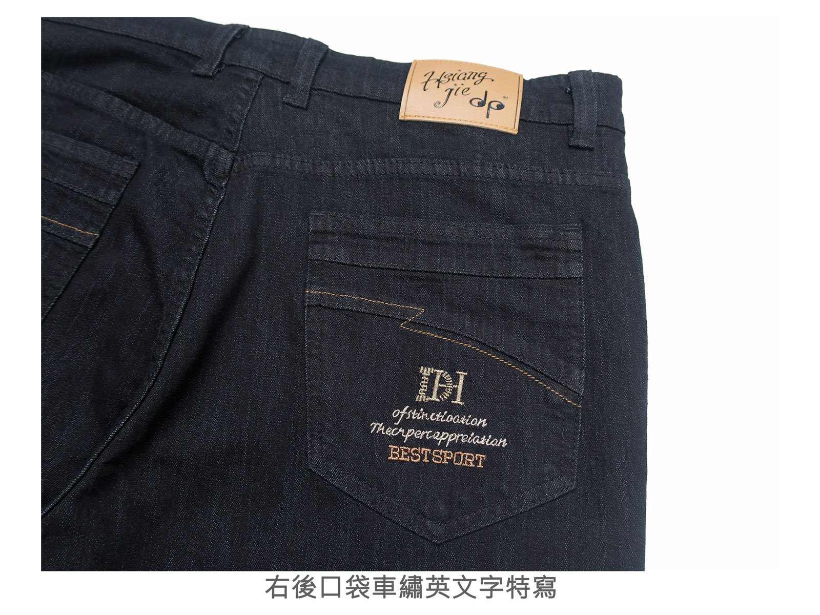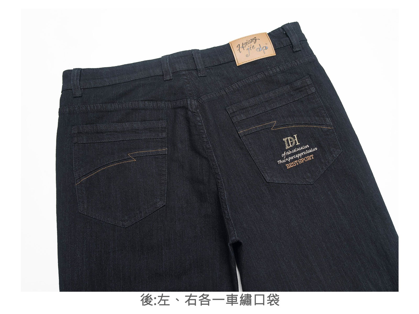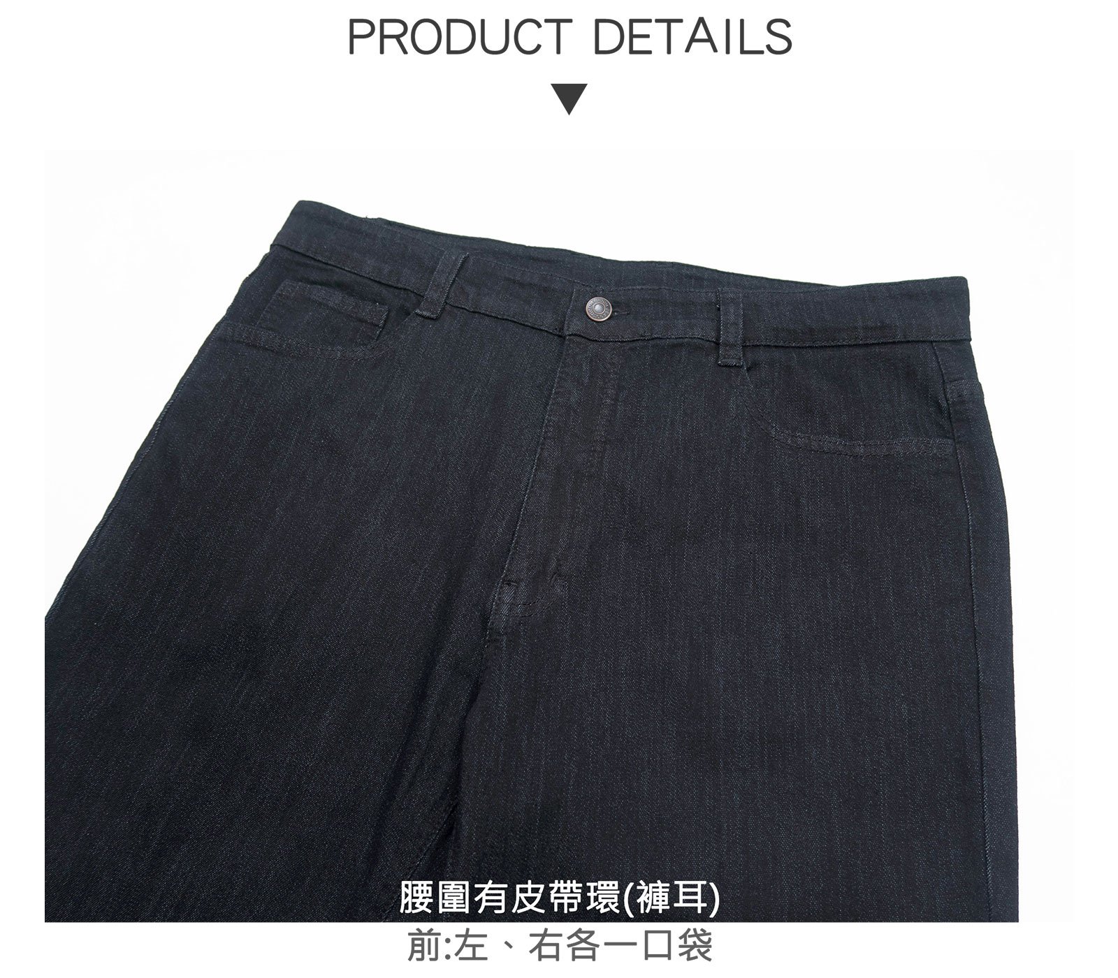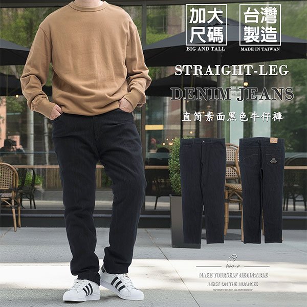 大尺碼台灣製黑色素面直筒牛仔褲,線條車繡後口袋,