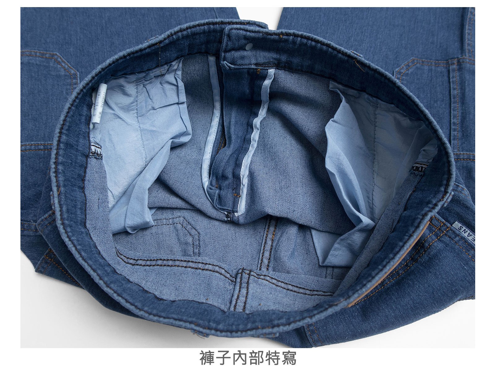 腰圍有皮帶環(褲耳)、褲檔有拉鍊。