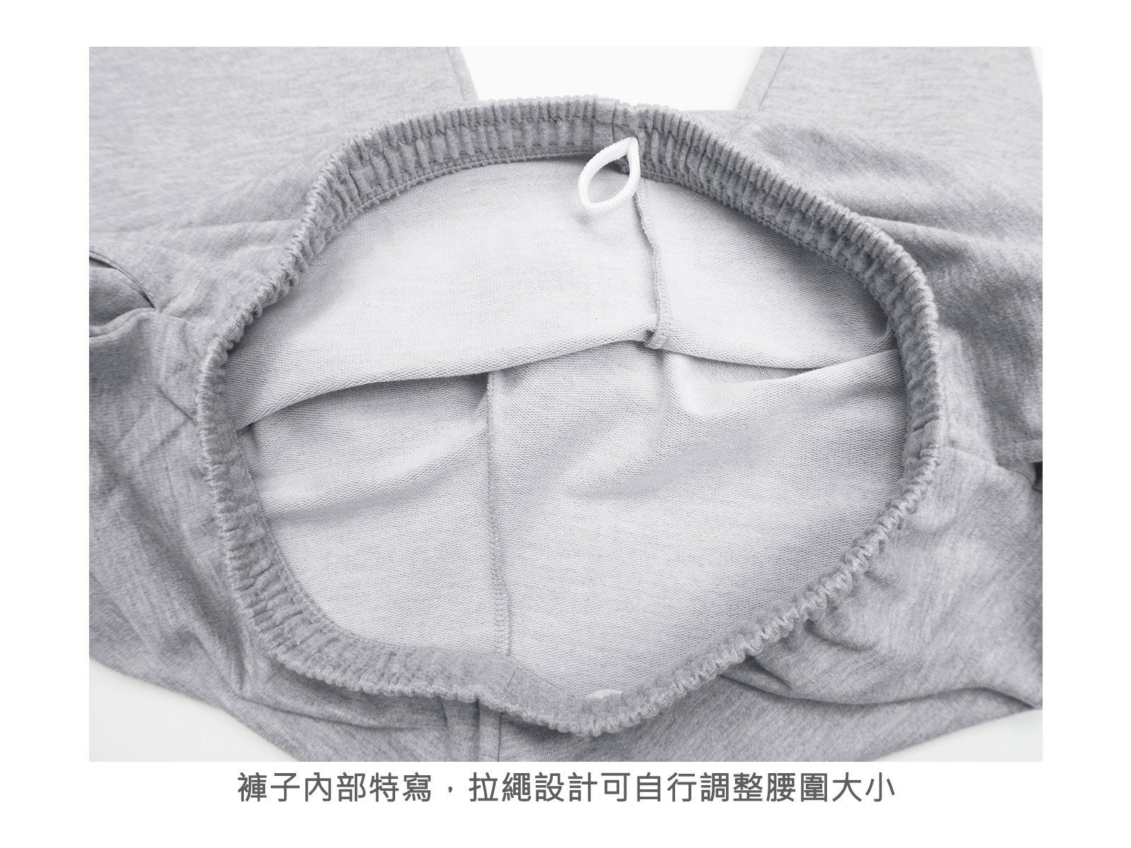 全腰圍彈性鬆緊帶,內拉繩設計可自行調整腰圍大小。