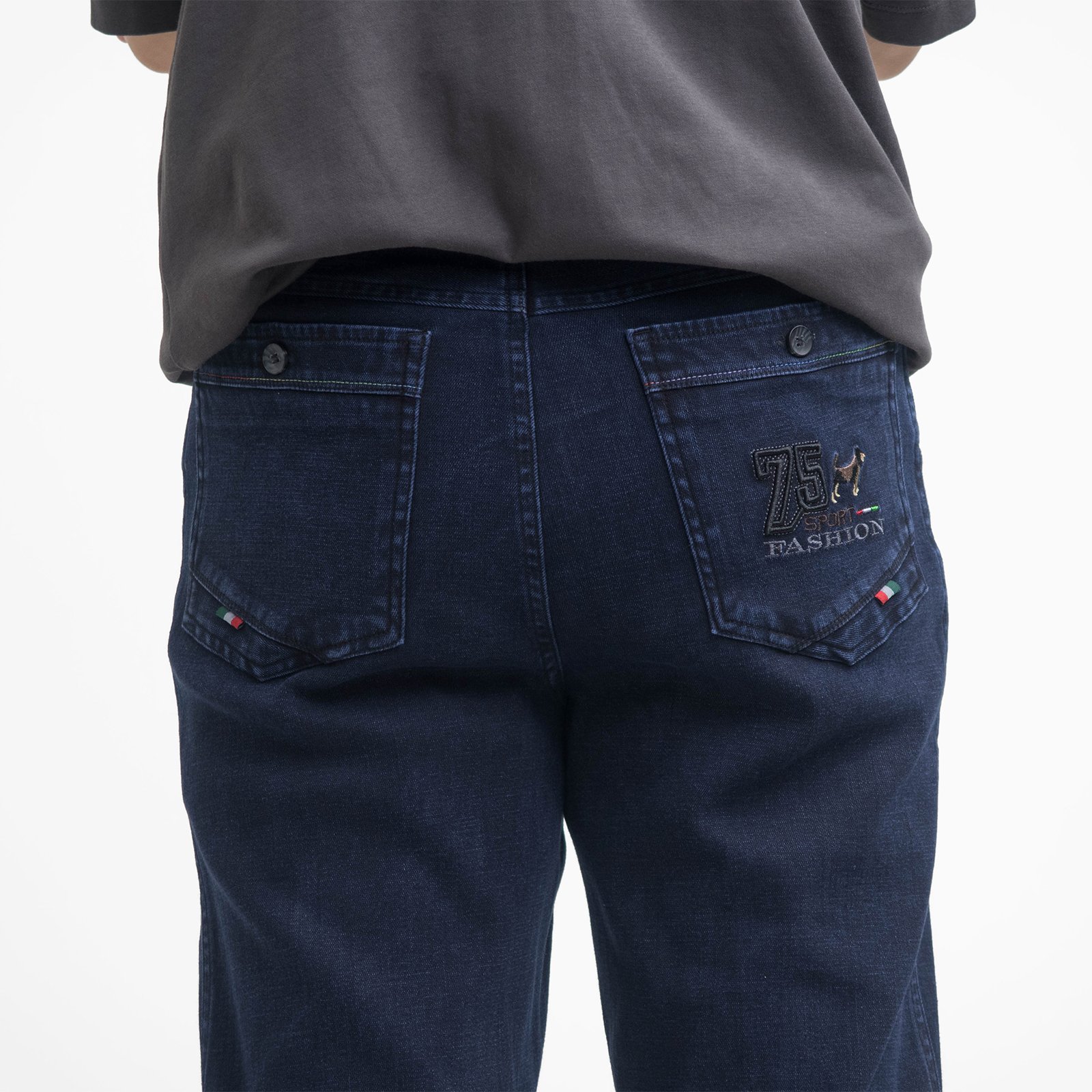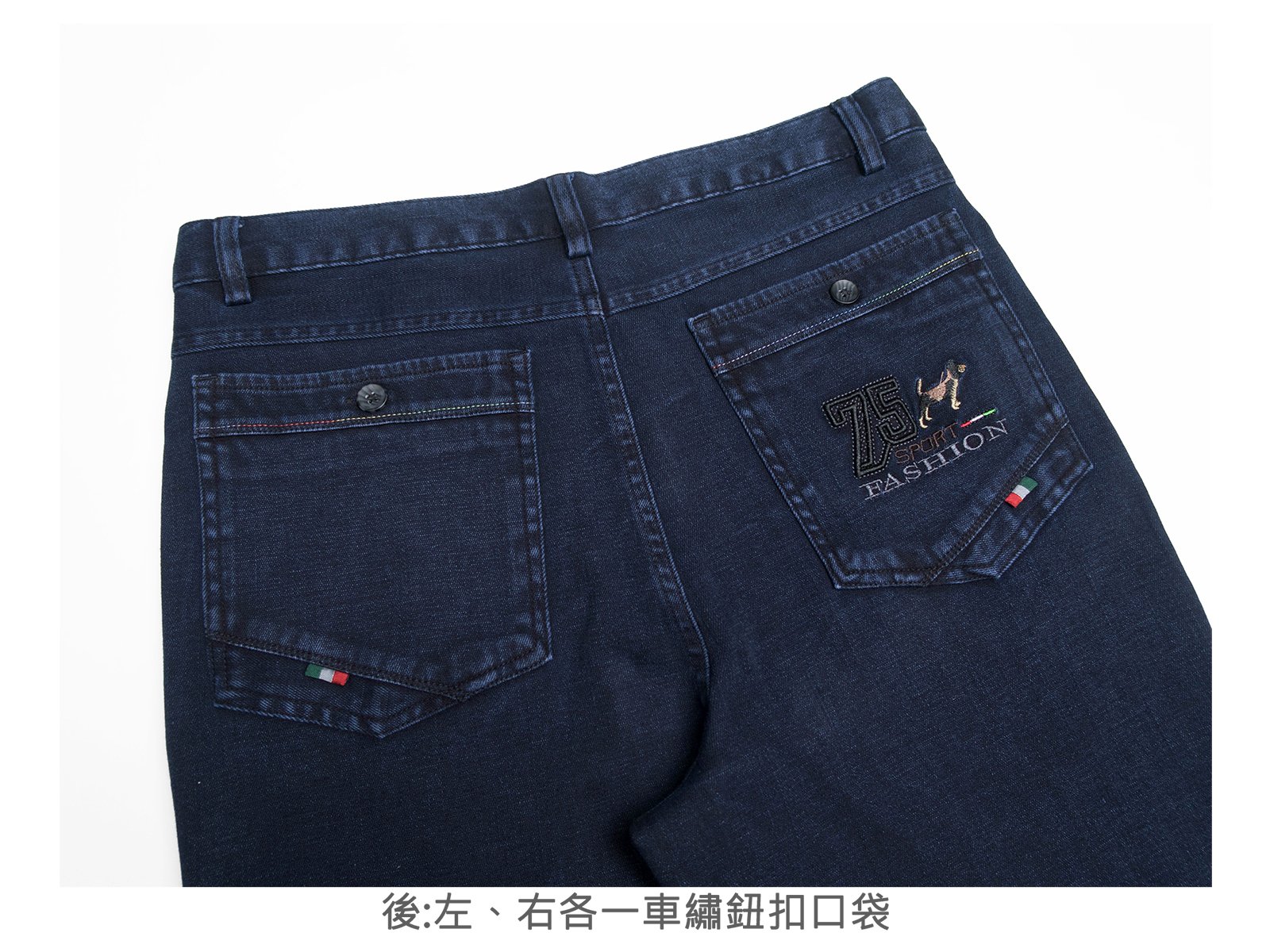 後:左、右各一車繡鈕扣口袋,