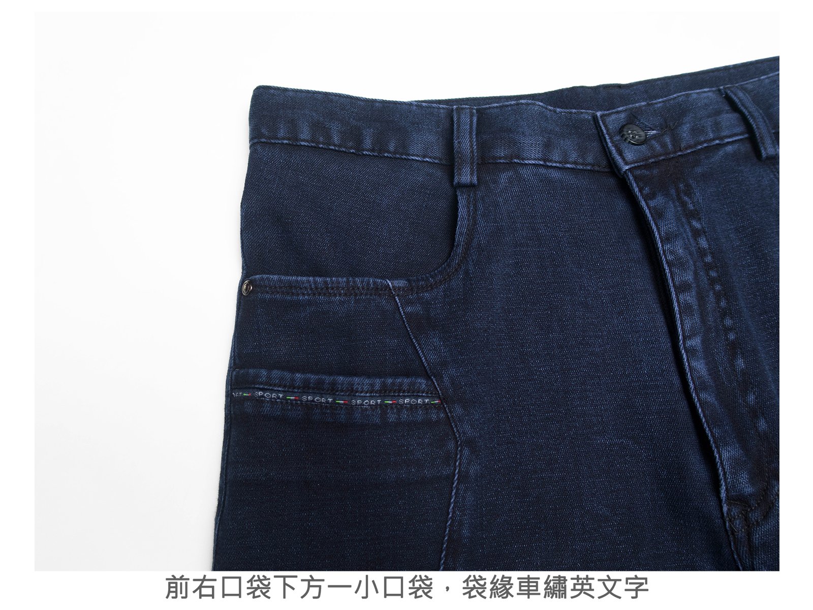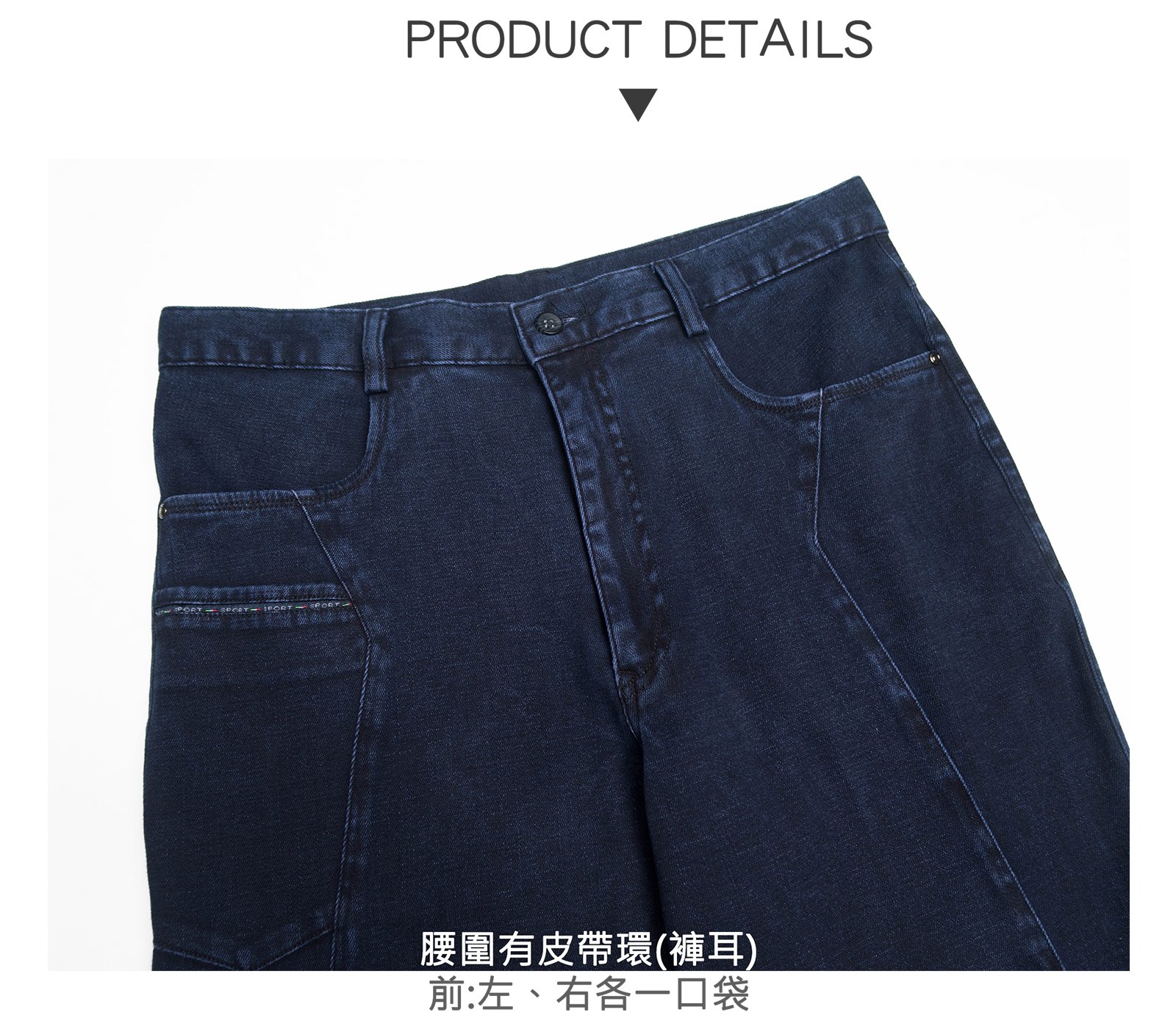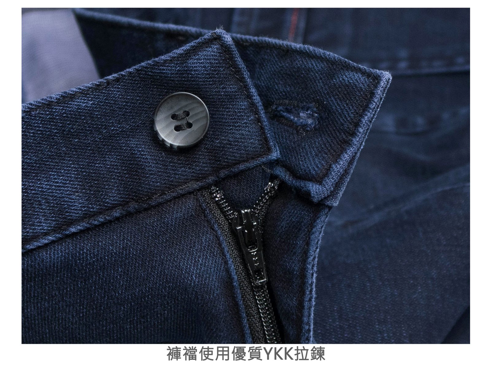 腰圍有皮帶環(褲耳)、褲檔使用優質YKK有拉鍊。