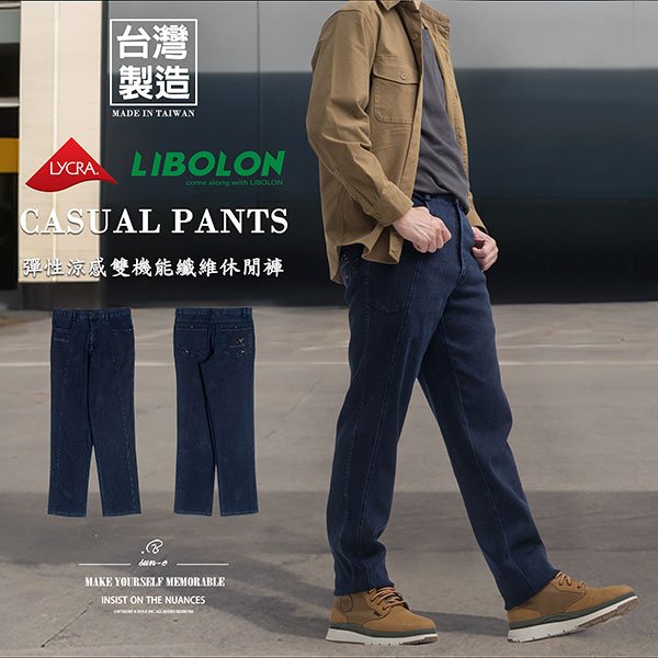 吸濕快乾涼感、彈性舒適萊卡雙機能休閒褲,穿著舒適強韌耐磨,頻繁穿著仍保持質感與舒適,輕鬆穿出自信風采