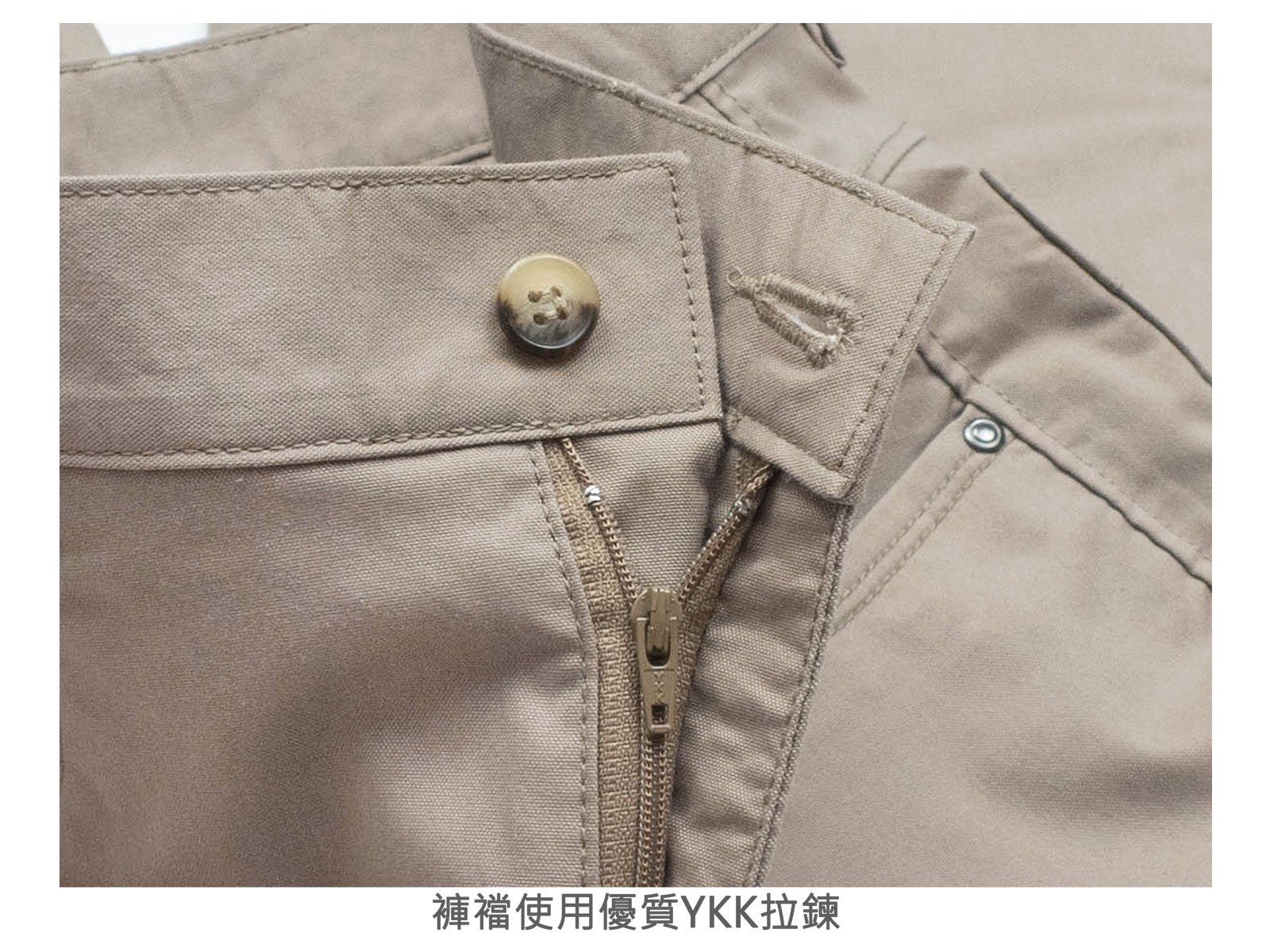 腰圍有皮帶環(褲耳)、褲檔使用優質YKK拉鍊。