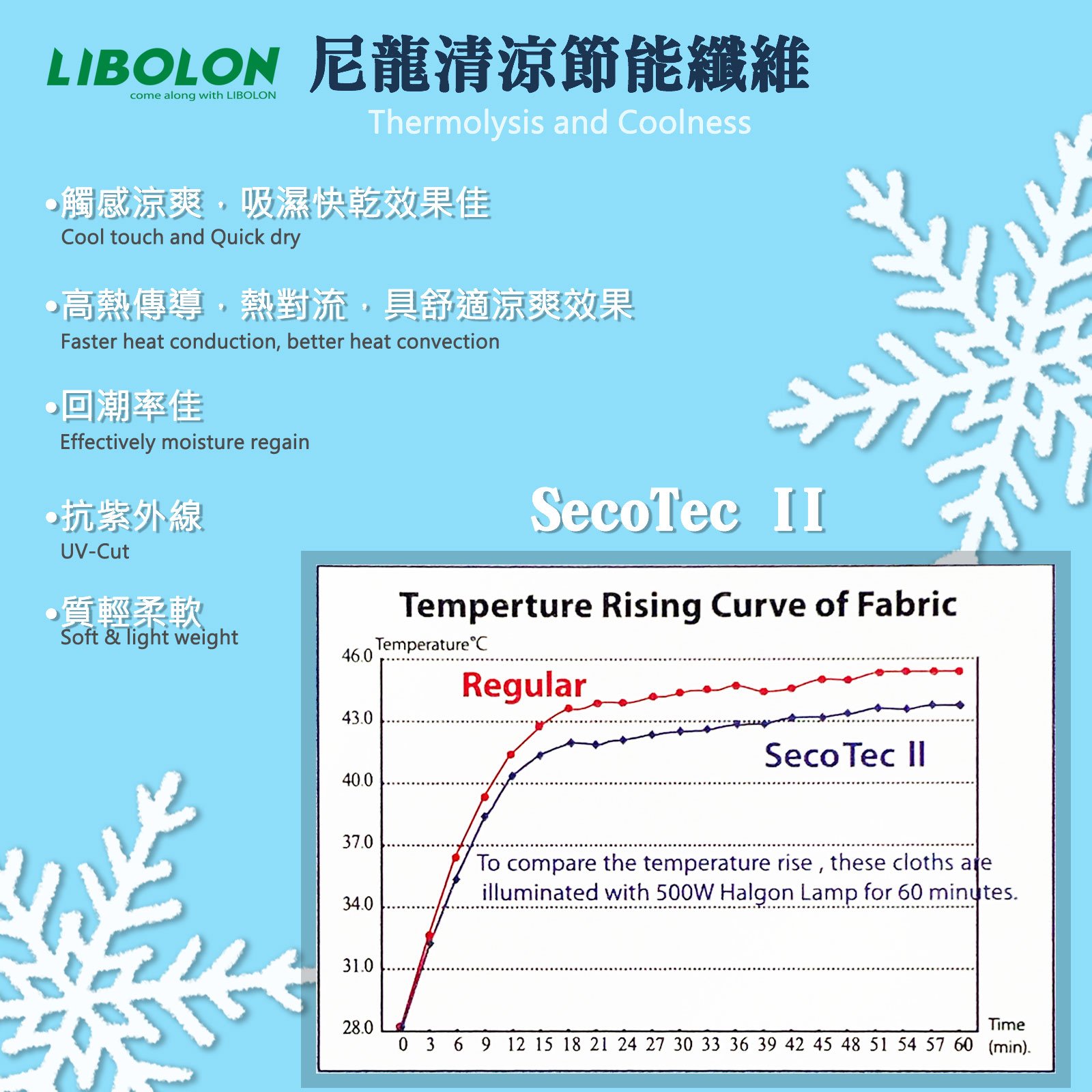 褲身使用尼龍清涼節能纖維(Thermolysis and Coolness),