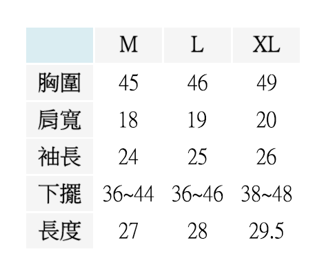 (模特兒身高180體重65公斤,胸圍86公分/34英吋,展示尺寸:M)