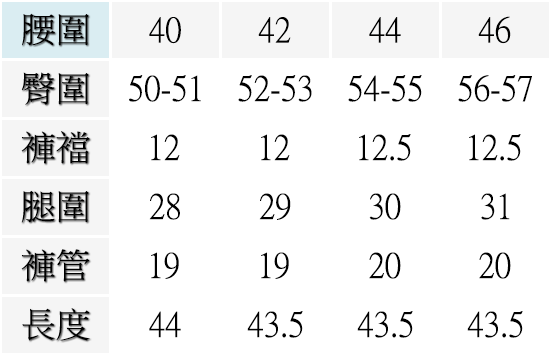 ▍尺寸表 Size Chart