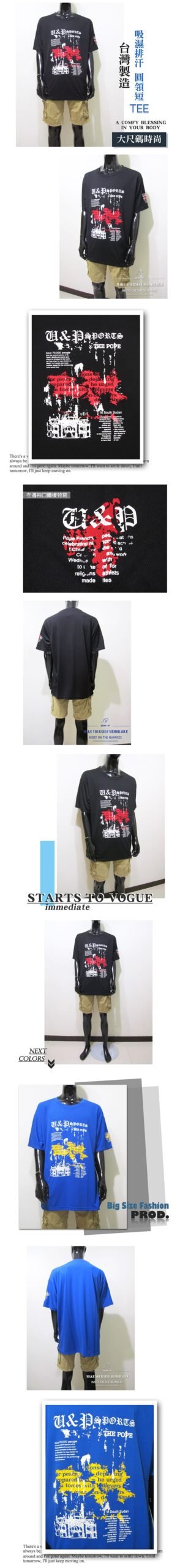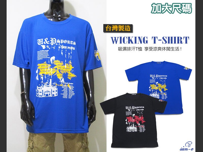 sun-e加大尺碼吸濕排汗彈性短T、加大尺碼台灣製造圓領短袖T恤、加大尺碼設計感圖案T恤、加大尺碼英文字短TEE、加大尺碼聚酯纖維100%T恤、加大尺碼休閒T恤、加大尺碼黑色T恤、加大尺碼藍色T恤、加大尺碼彈性T恤、休閒百搭短T-shirt、圖案T恤、英文字T恤、潮流短T恤(310-7587-09)寶藍色(21)黑色 尺寸:3L 5L(50~56英吋) [實體店面保障]
