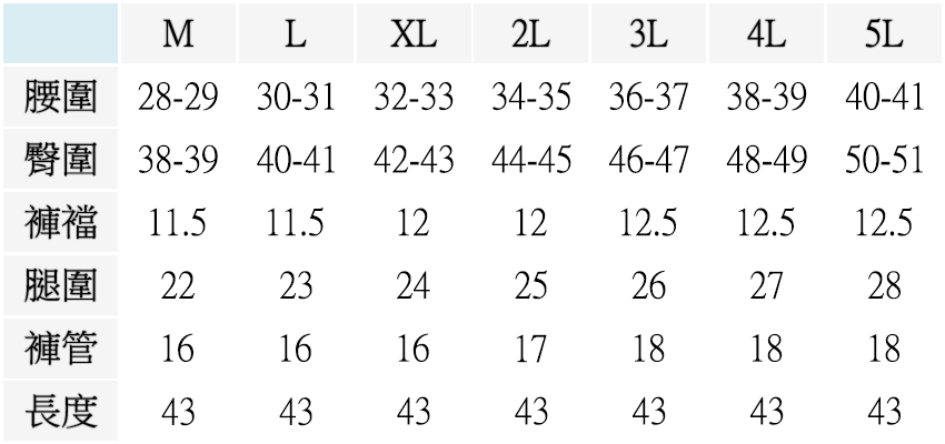 ▍尺寸表 Size Chart