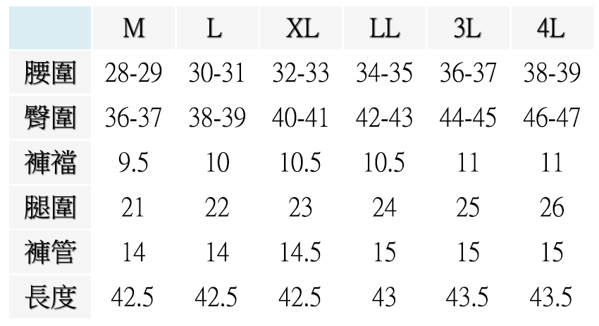 ▍尺寸表 Size Chart
