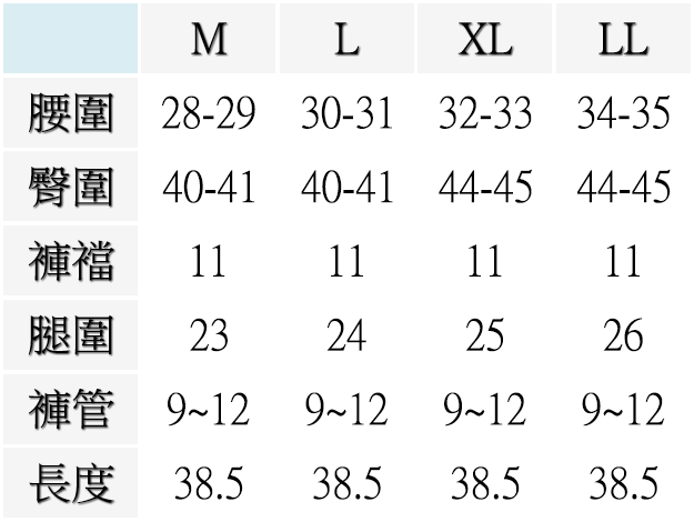 ▍尺寸表 Size Chart
