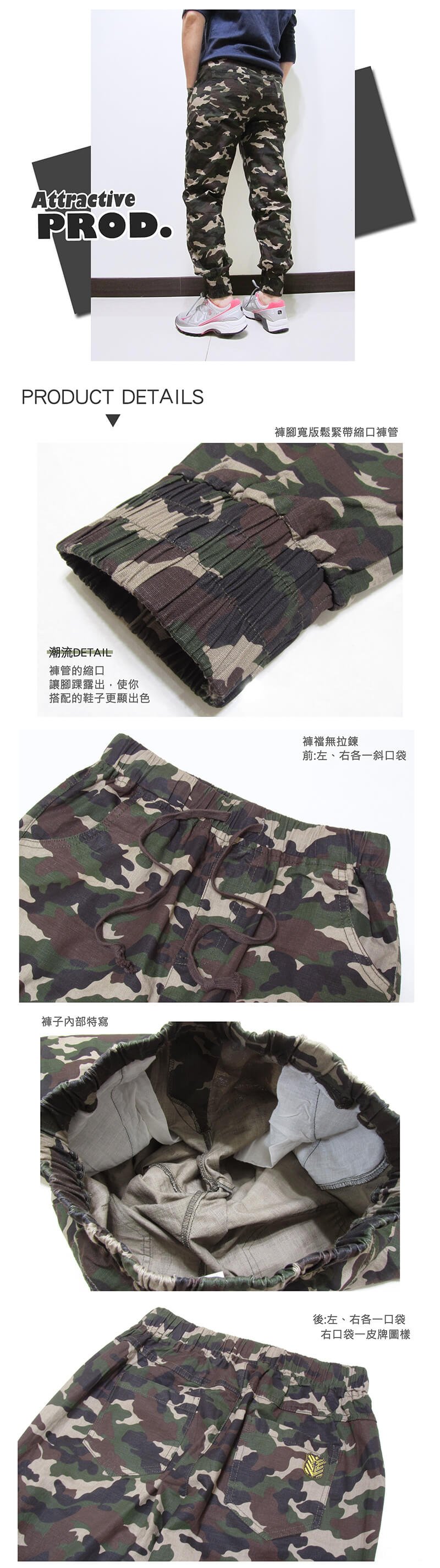 sun-e迷彩JOGGER PANTS、迷彩縮腳褲、縮口褲、束腳褲、美式休閒潮流縮口褲、慢跑褲、褲管束腳、迷彩休閒褲、JOGGERS、抽繩束口褲、休閒長褲、腰圍寬版鬆緊帶(012-4078-11)軍綠色 尺寸S M L XL(腰圍:26~33英吋) (男女可穿)[實體店面保障]