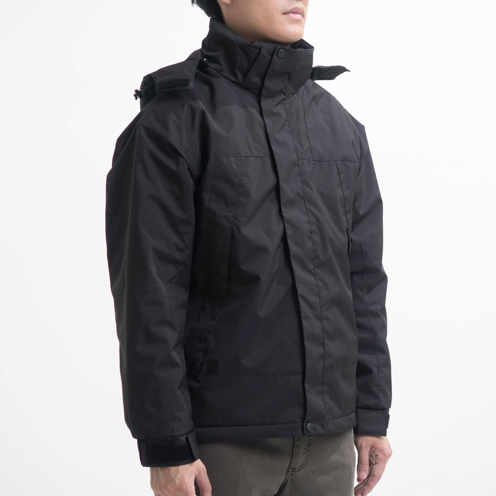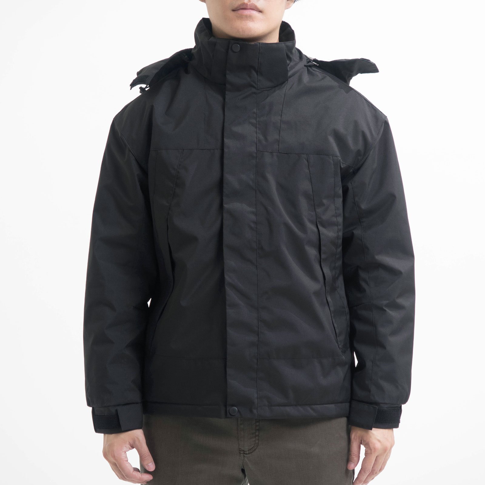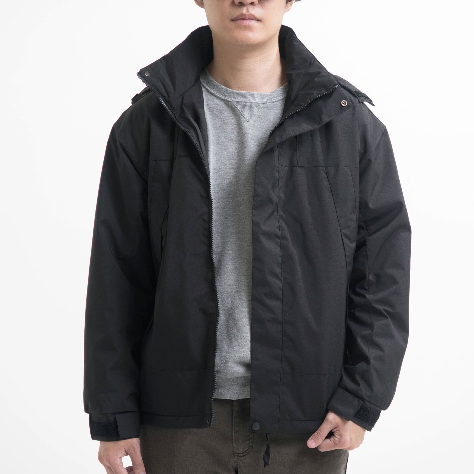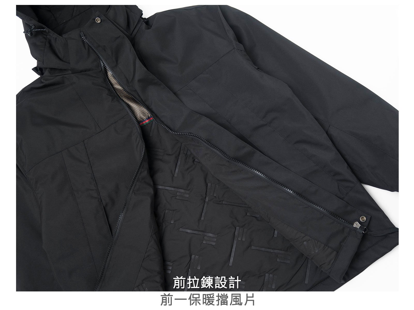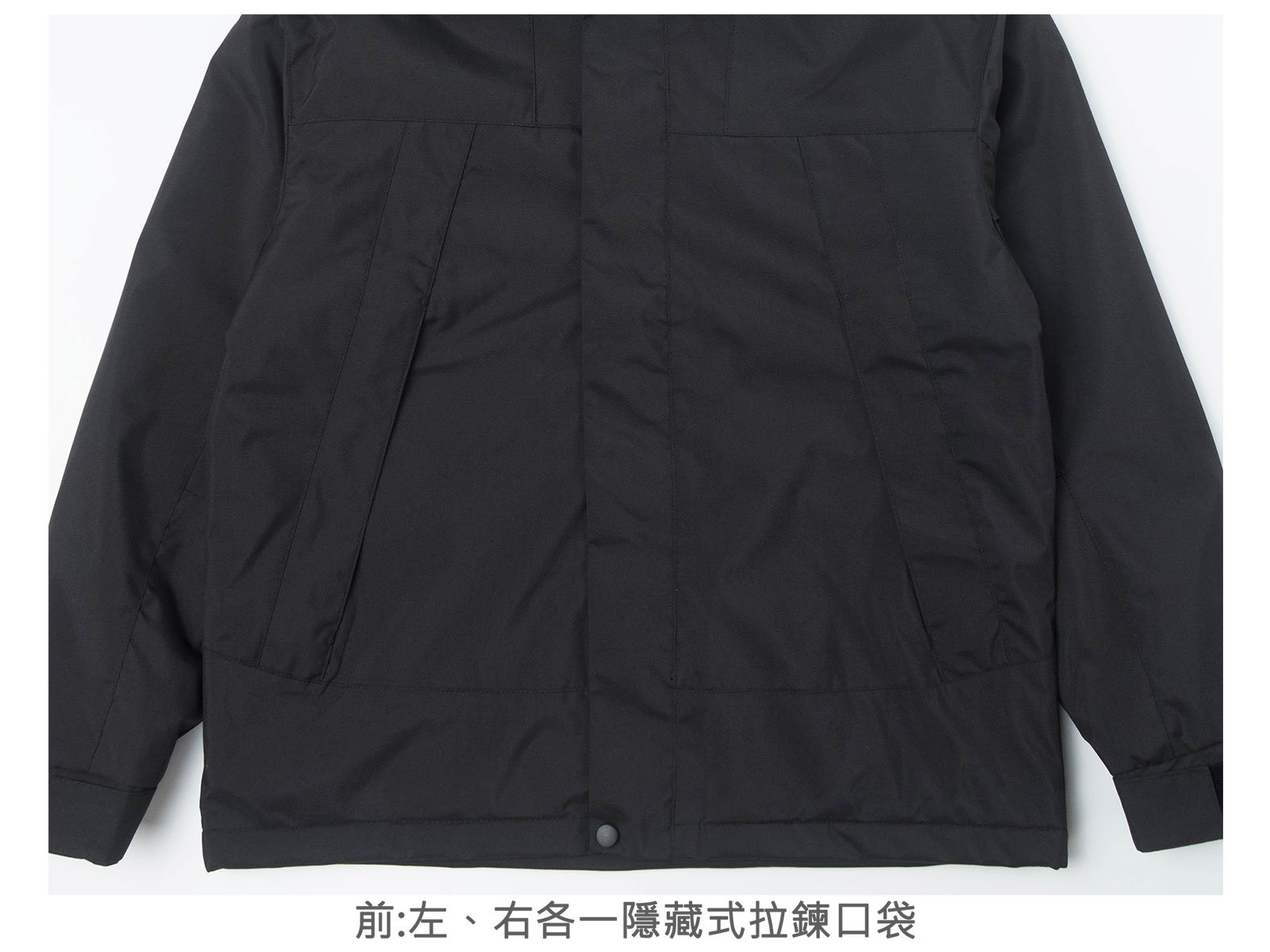 附帽可拆拉鍊設計;帽緣拉環束口防風保暖設計。